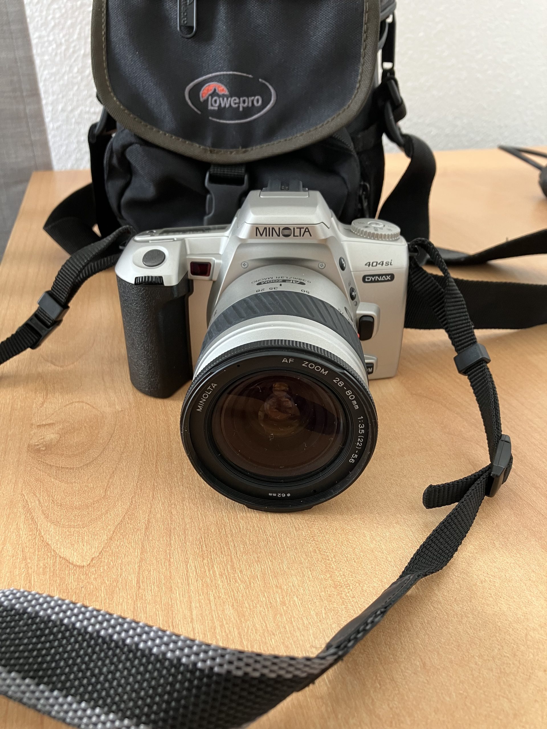 Objet trouvé : appareil photo argentique MINOLTA gris retrouvé dans une pochette Lowepro noire