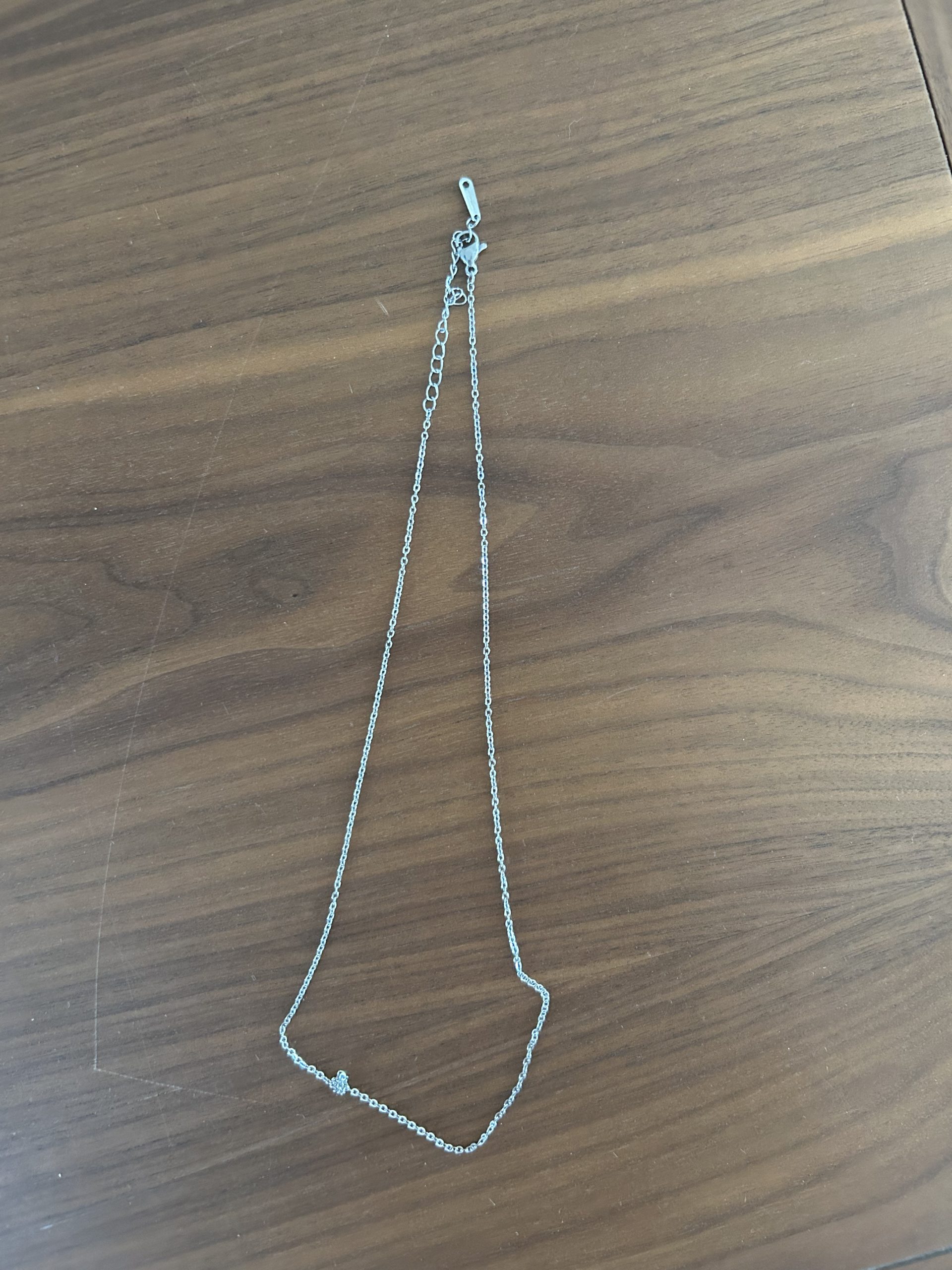 Objet trouvé : Petite chaine en métal argenté (argent?) qui paraît constitué de l’assemblage de deux chaînes aux tailles de maillons differents.
