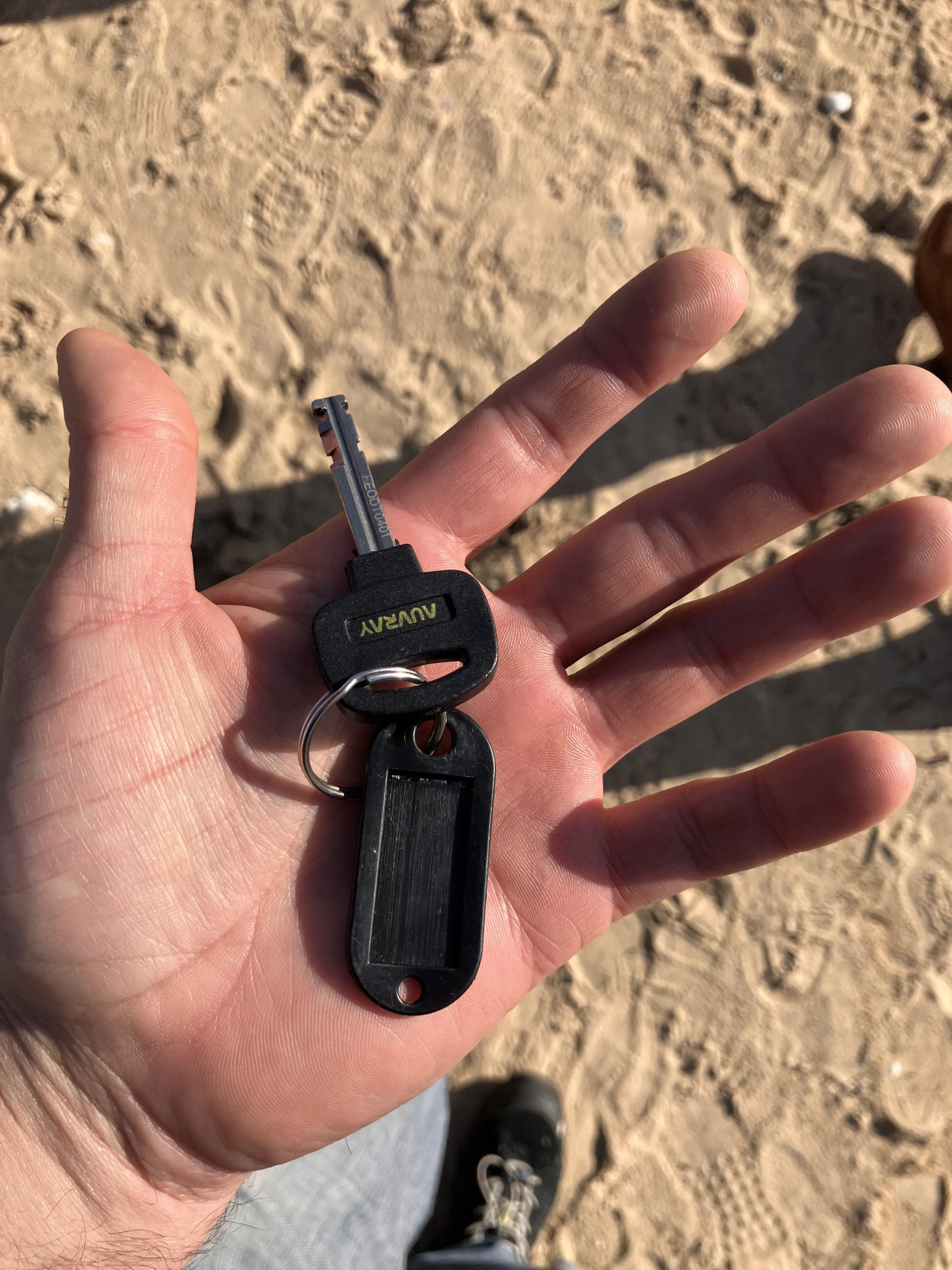 Objet trouvé : clé d'antivol de vélo, avec porte-étiquette en plastique noir sans l'étiquette