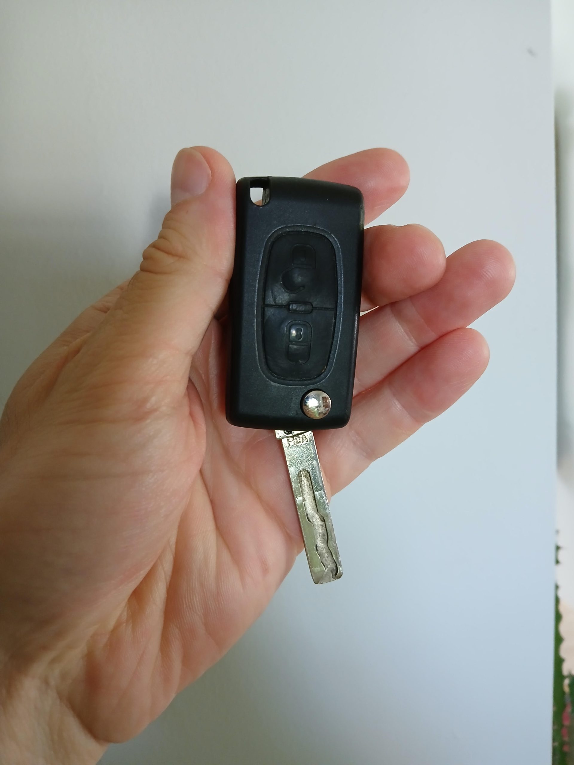 Objet trouvé : Clé rectangulaire de voiture de type ancienne Citroën, Renaut ou Peugeot.