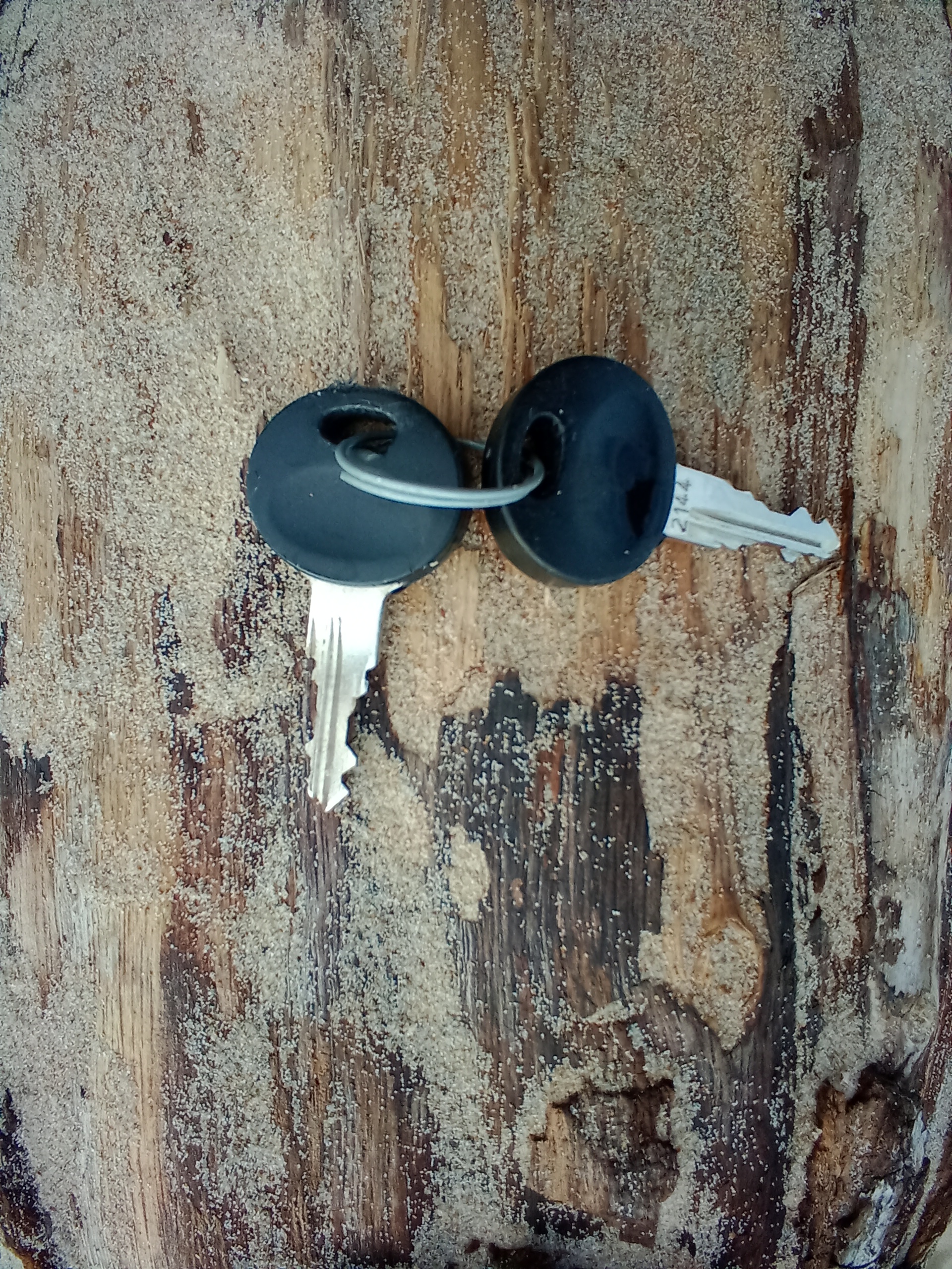 Objet trouvé : Deux petites clés rondes noires