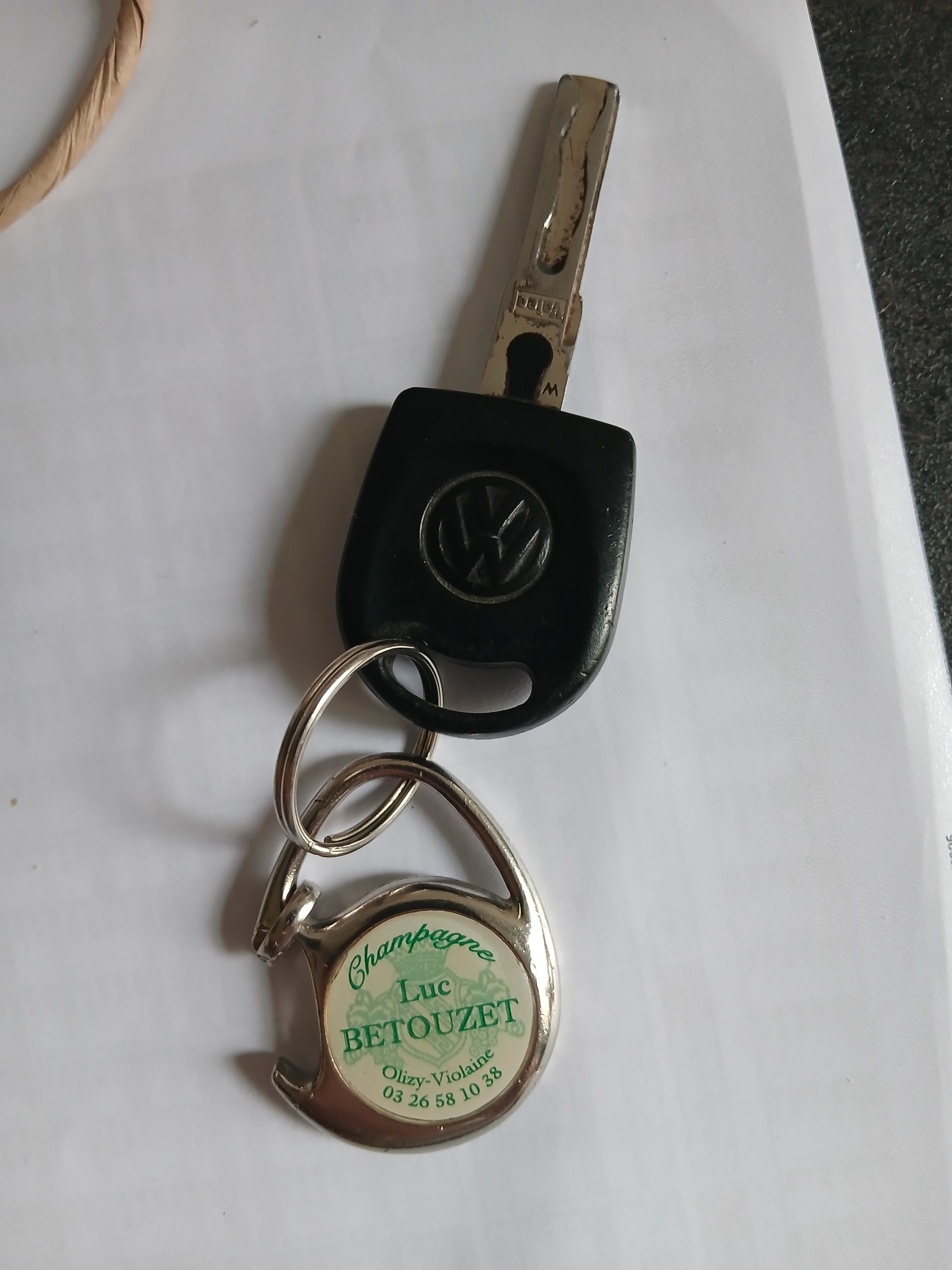 Objet trouvé : Une clef de voiture Volkswagen avec porte-clé champagne Luc Betouzet
