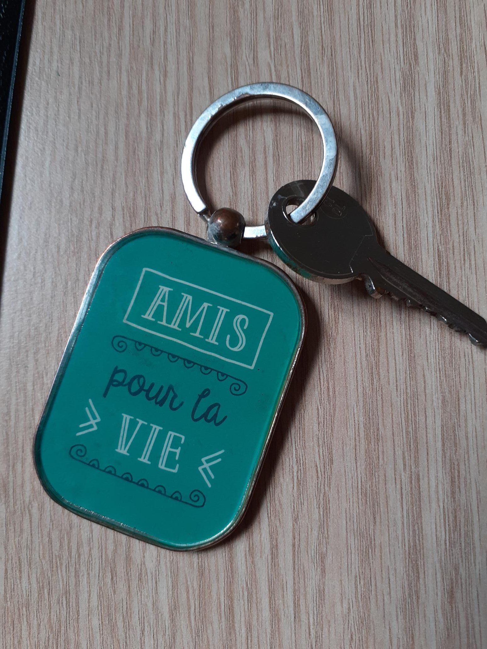 Objet trouvé : 1 clé avec un porte clé vert "amis pour la vie"