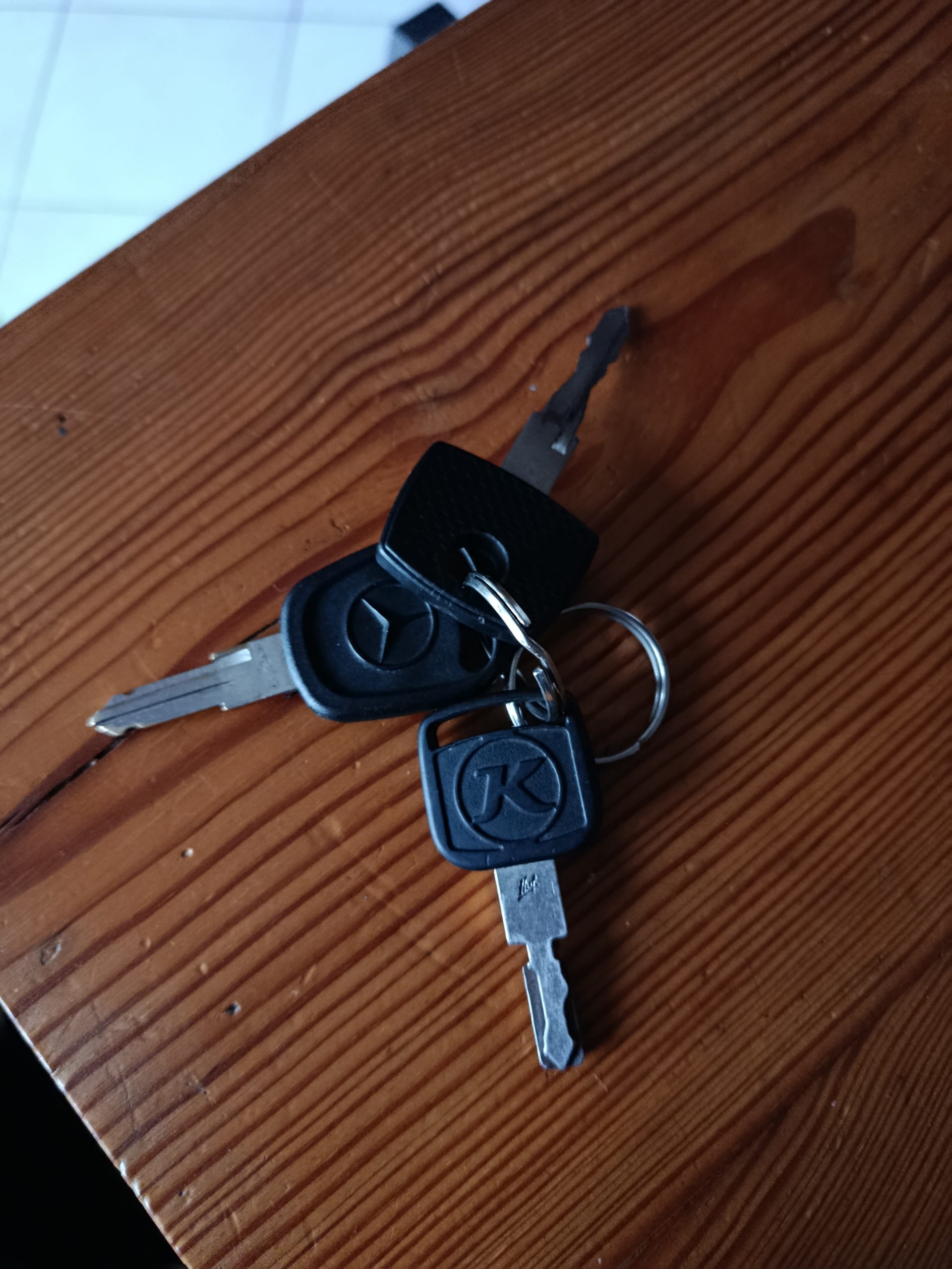 Objet trouvé : Trousseau de trois clés, une avec le logo Mercedes, une autre avec un "k" gravée dessus et une troisième clé sans rien de gravée dessus ( toutes les clés sont noires)