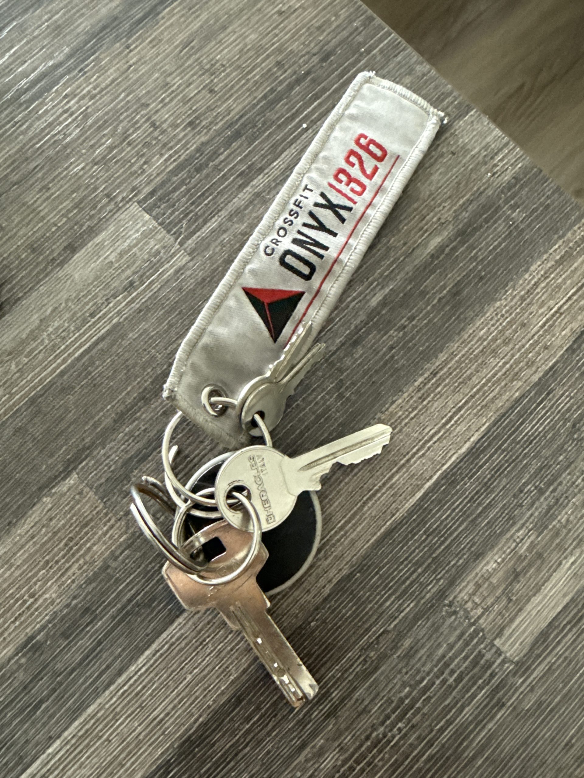 4 clés et un badge noir avec un porte clés crossfit onyx 326