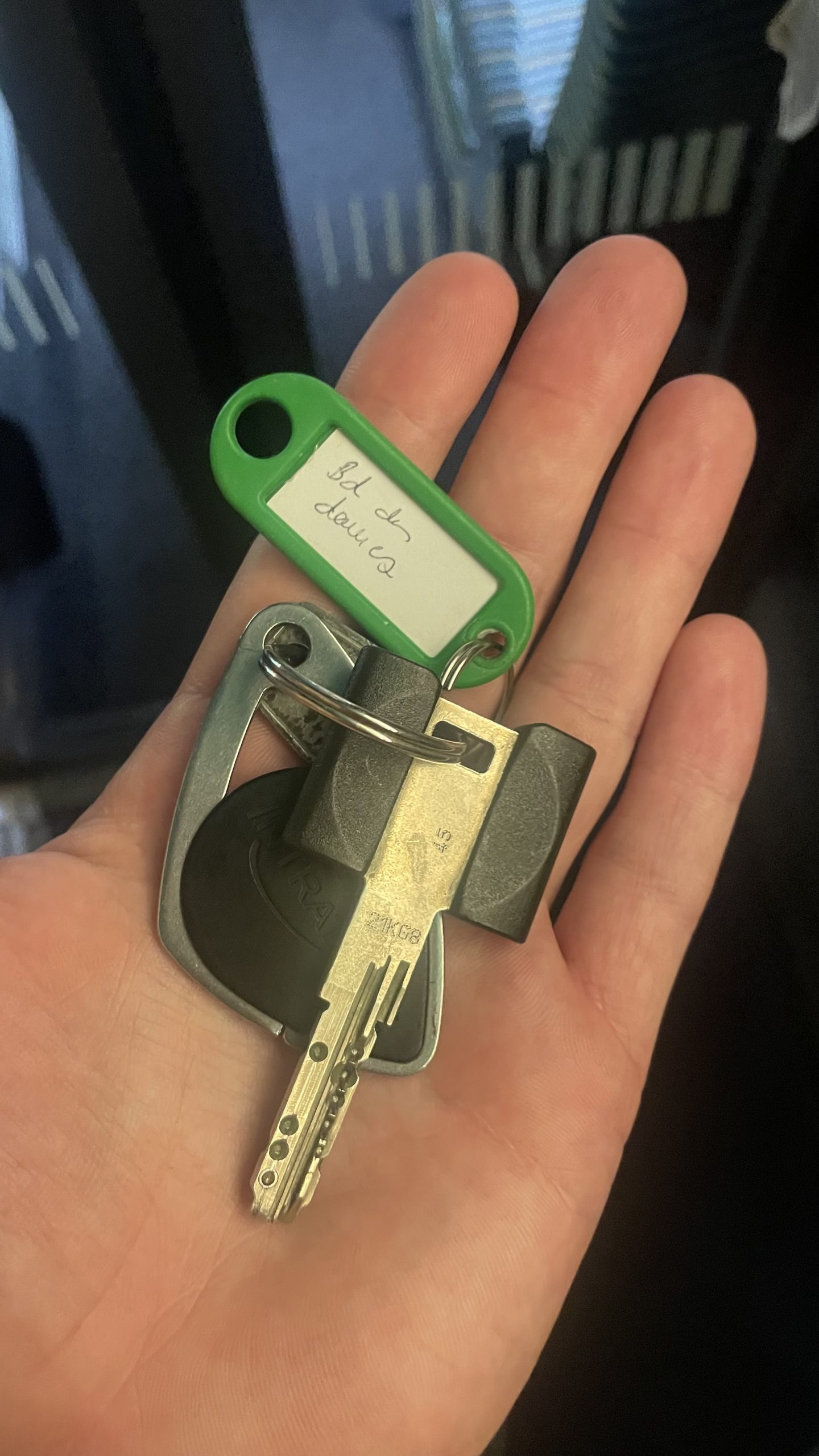 Clés composées d’un badge, d’une clé principale et d’une clé secondaire ainsi qu’un porte clé étiquette