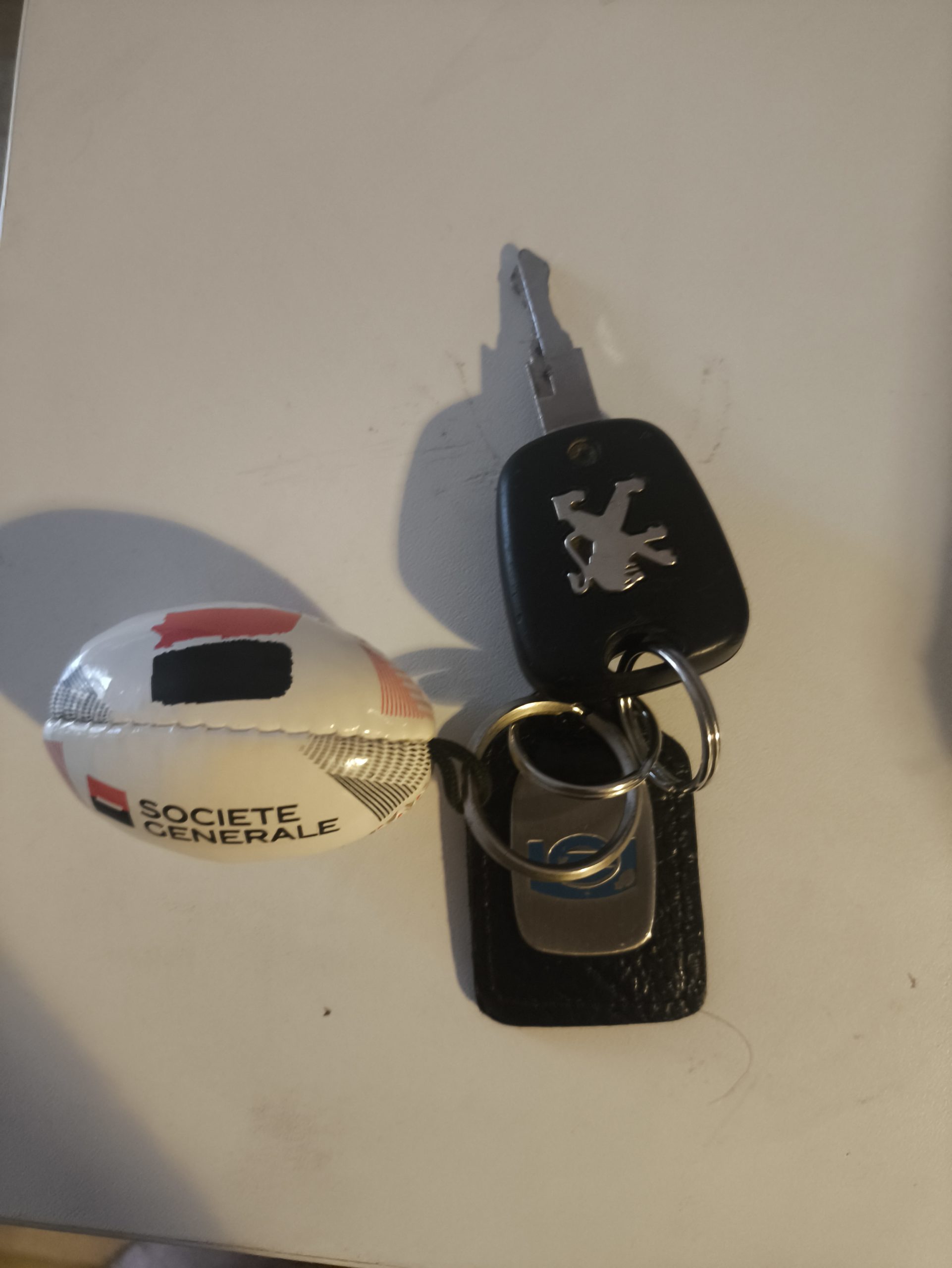 Objet trouvé : Clés de Peugeot avec petit ballon de rugby stade toulousain et badge engie