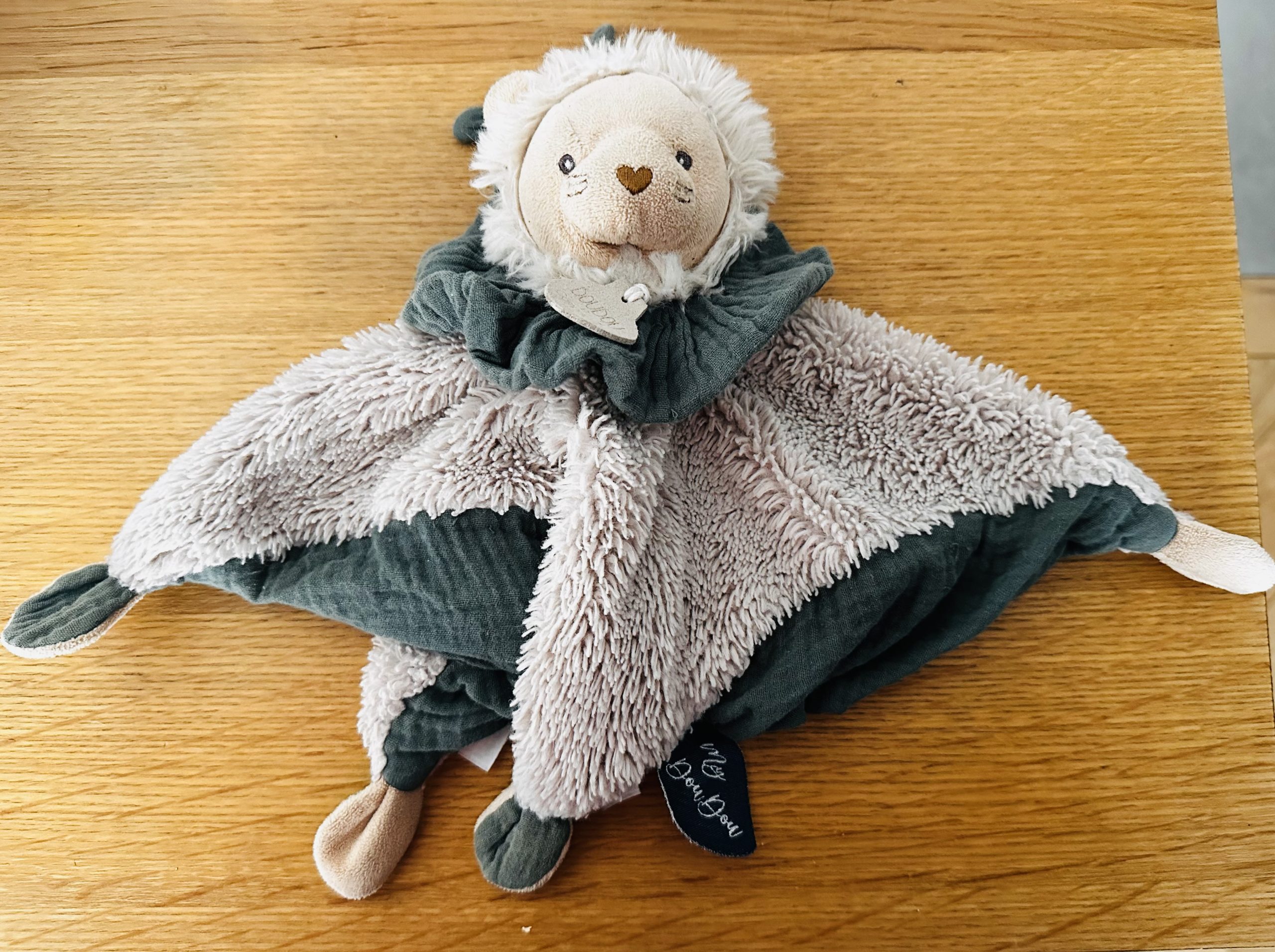 Doudou Petit Lion gris et vert