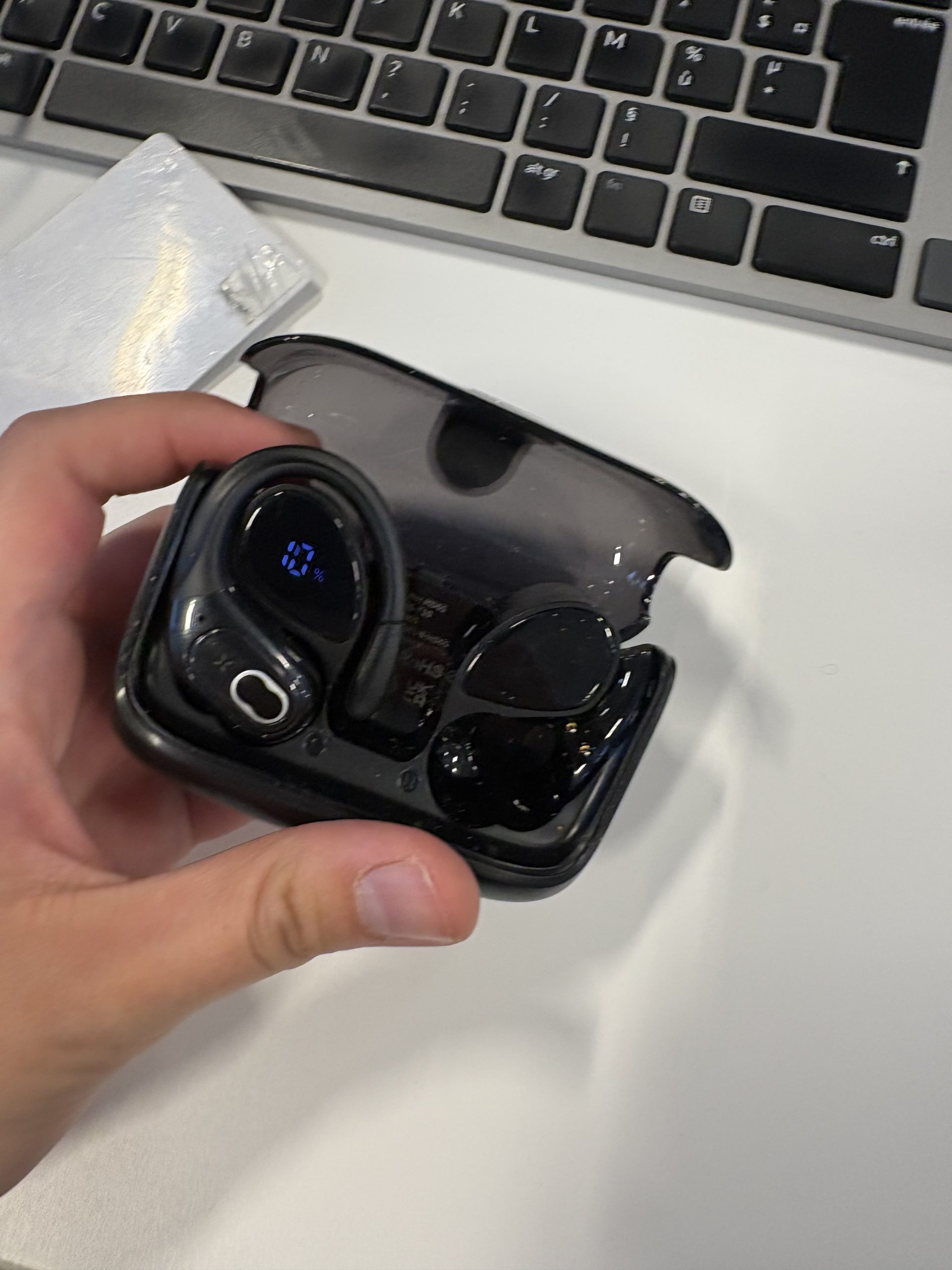Boîte écouteurs avec écouteur gauche à l’intérieur
