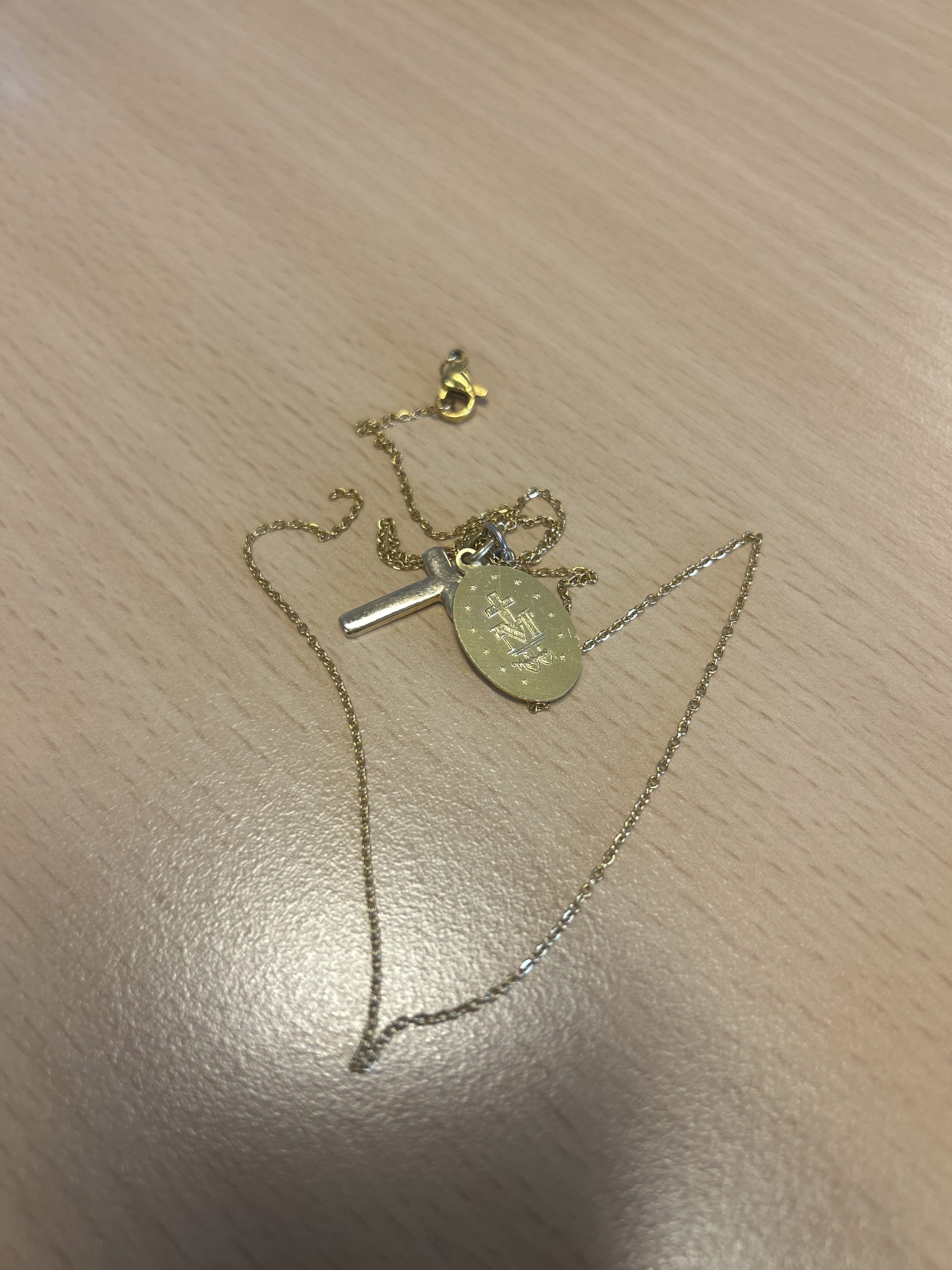 Objet trouvé : Gourmette couleur or avec inscription M et croix, trouvé aux abords de l’arrêt de tramway « cote de nacre »