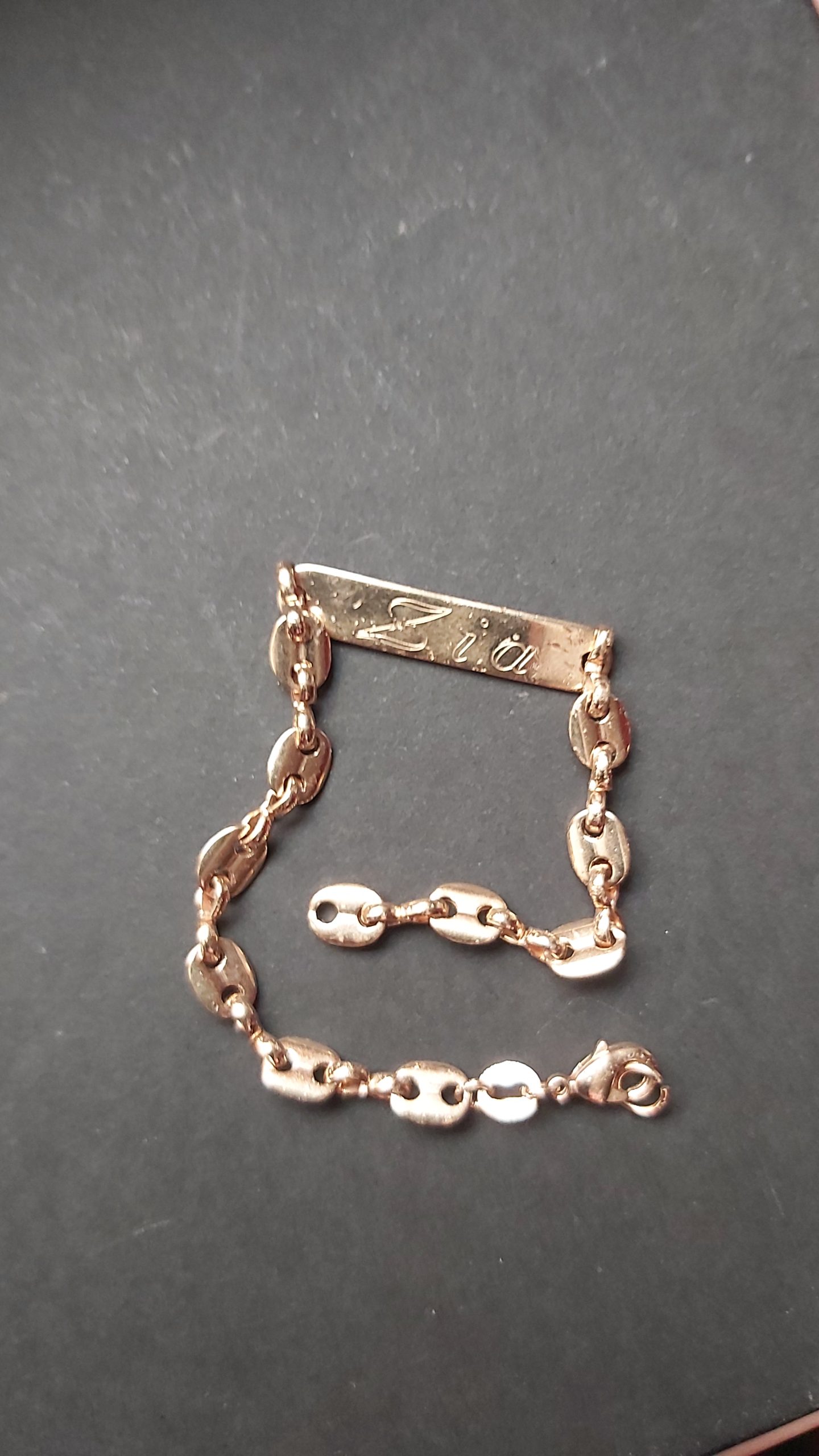 Objet trouvé : Gourmette dorée à gros maillons, avec poinçon et prenom +date de naissance