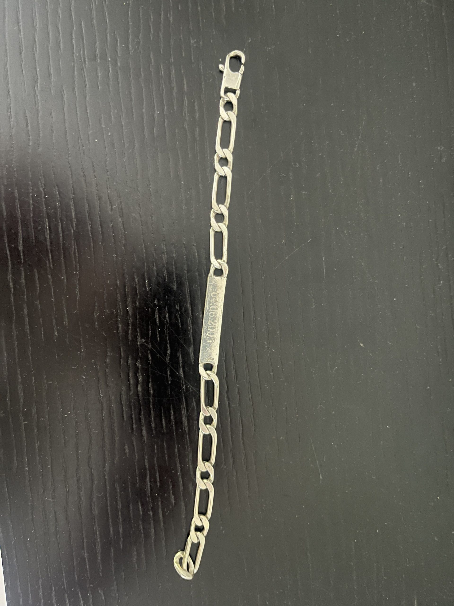 Objet trouvé : La date 04.06.2005 est gravée au dos de la plaque de la gourmette