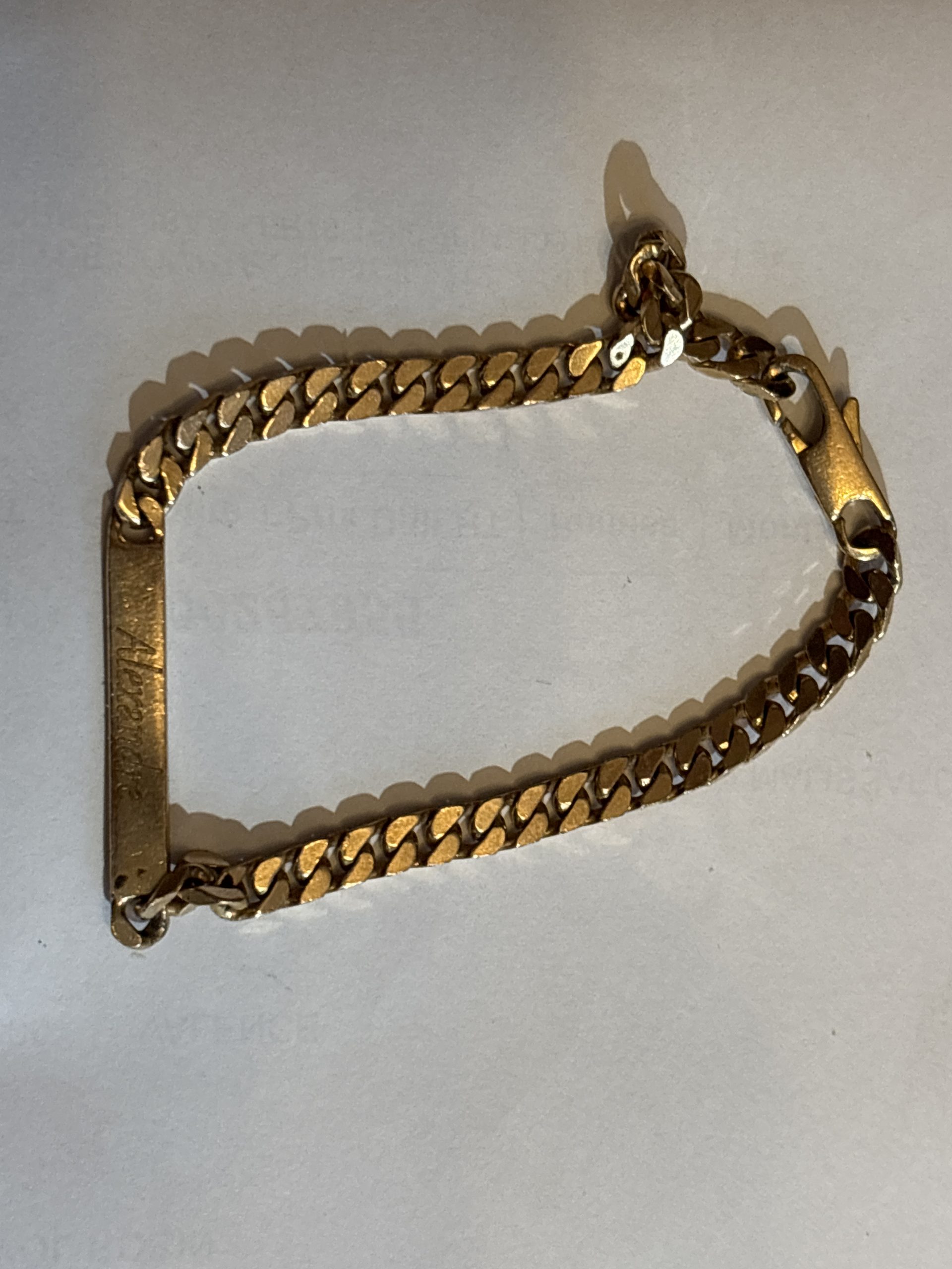 Gourmette enfant dorée, maille plate, avec gravure Alexandre.