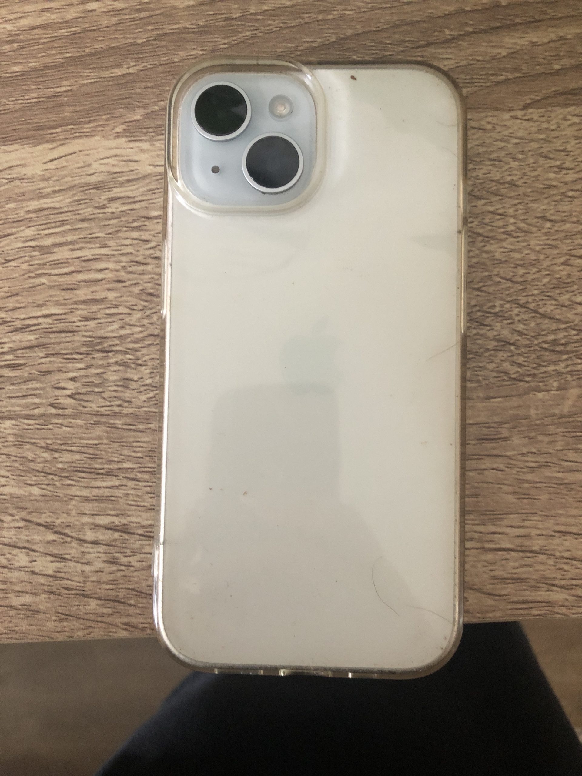 iPhone gris avec coque transparente