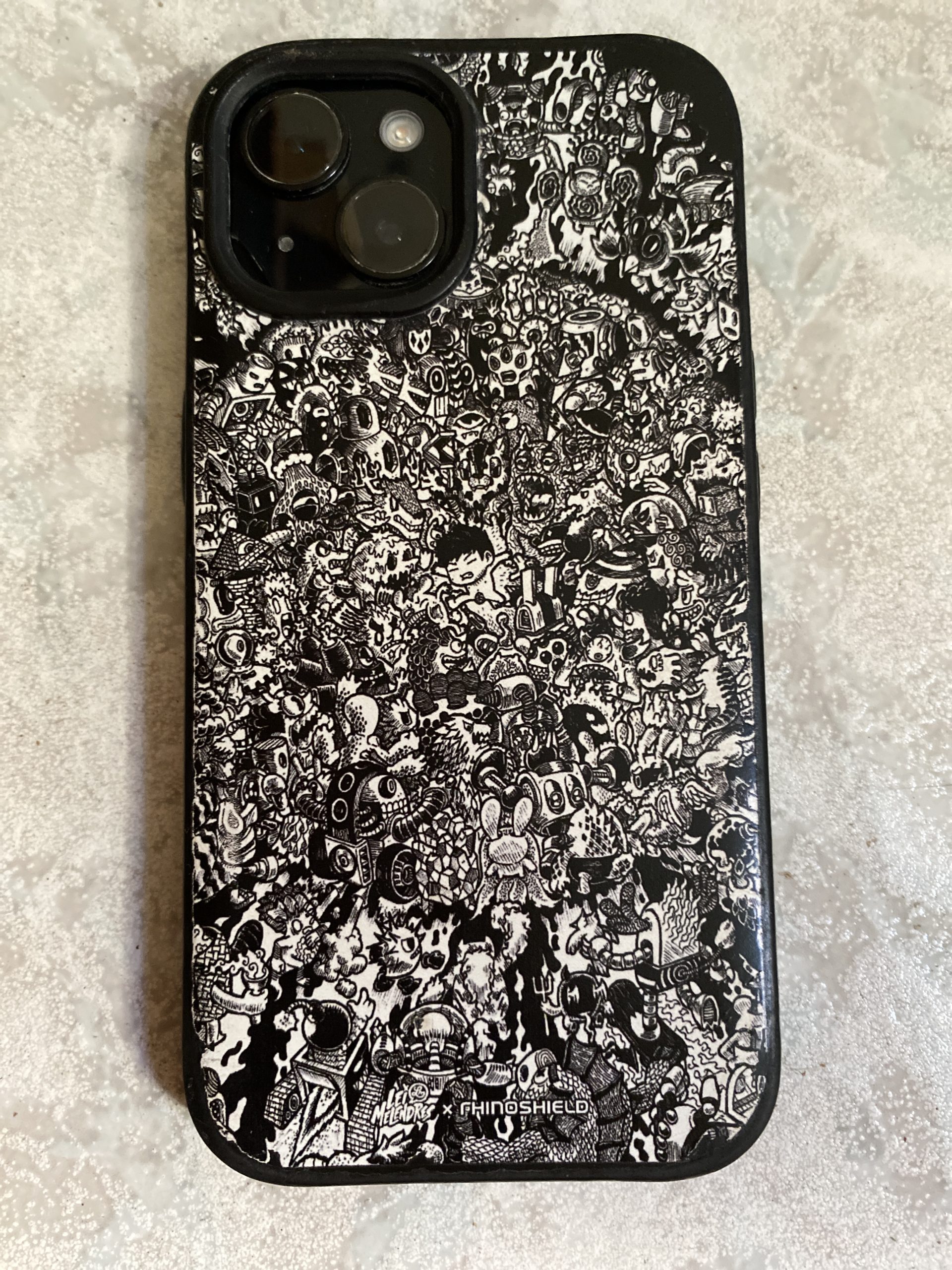 Objet trouvé : iPhone noir avec coque noire et blanche rhinoshield Lei Melendres. Protecteur d’écran très usé et dos du téléphone felé