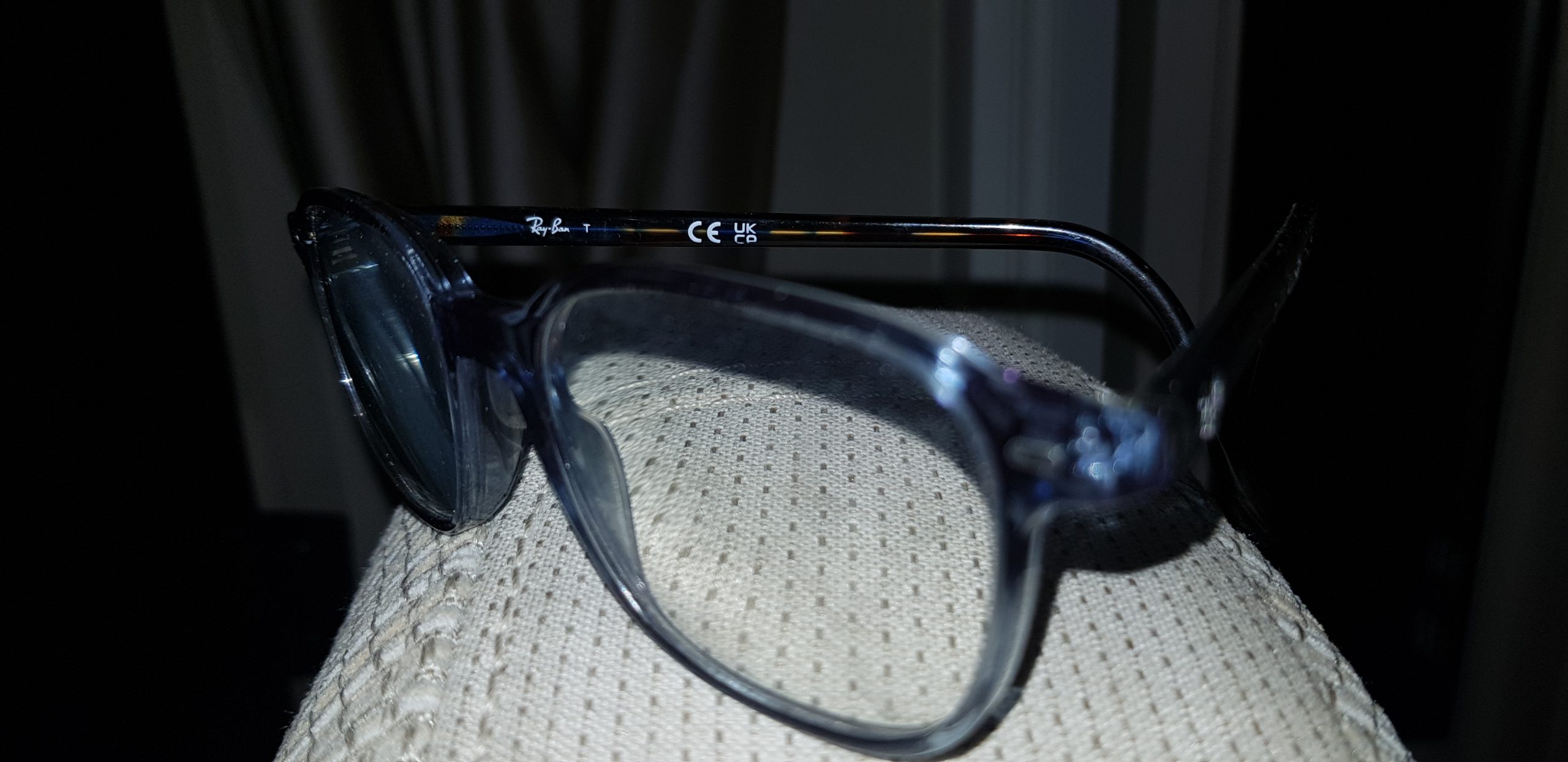 Objet trouvé : Paire de lunette de vue de marque Ray Ban, probablement pour enfant car petite monture. Couleur Léopard. Trouve sur un rocher sur la pointe Philibert à la Trinité sur mer.