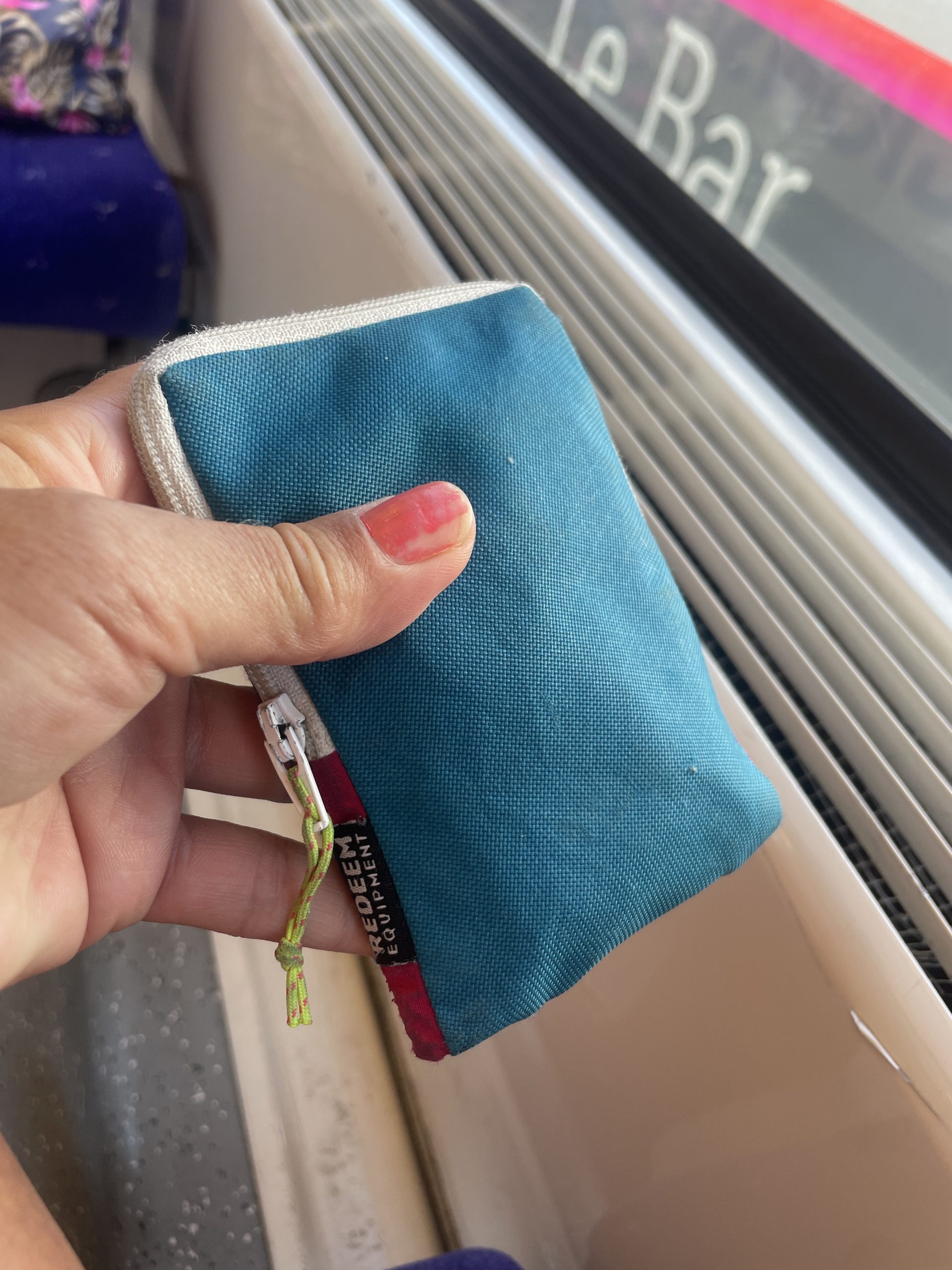Objet trouvé : Porte monnaie bleu et rose avec un zip