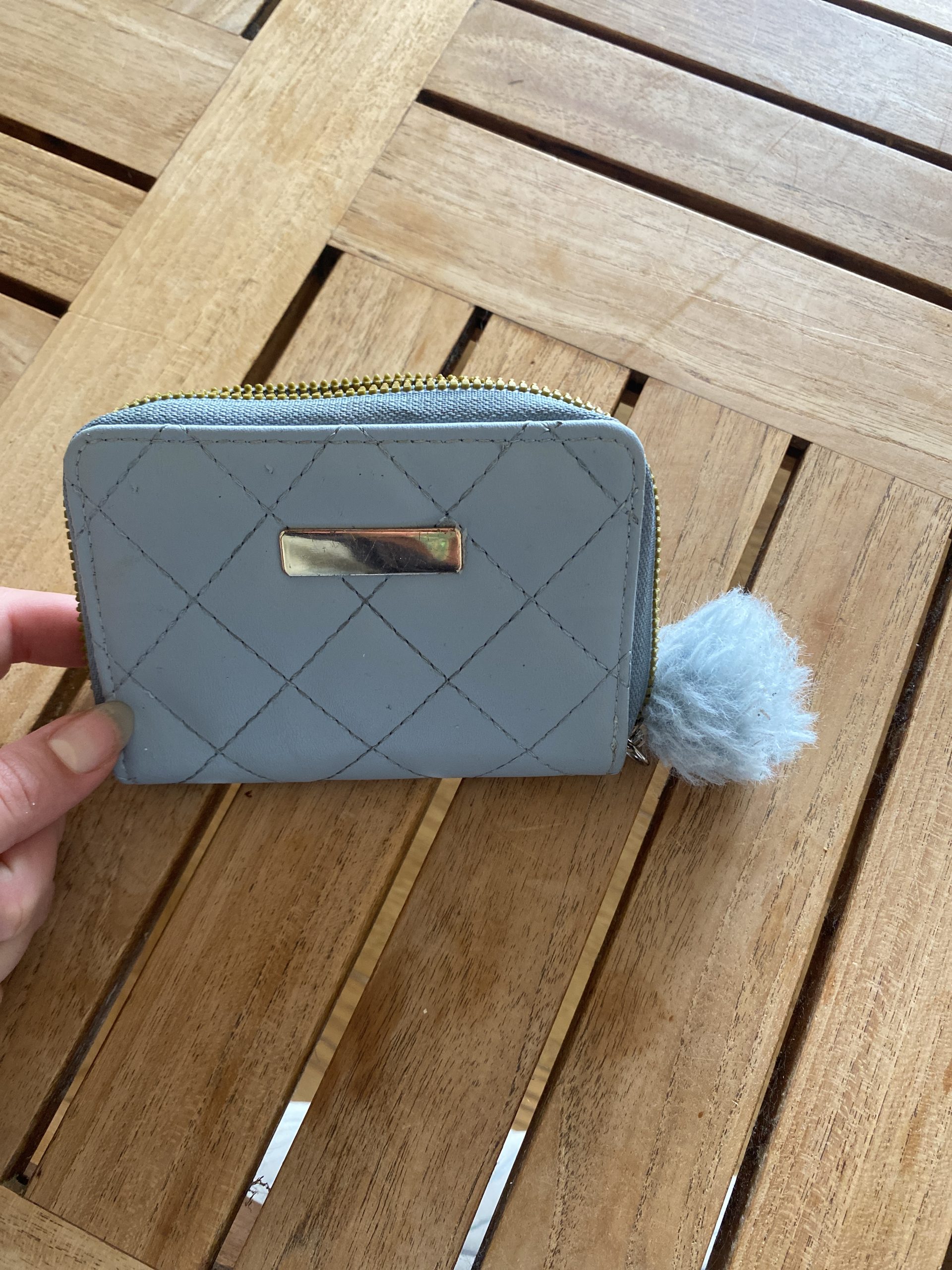 Objet trouvé : J’ai trouvé un porte-monnaie bleu clair, auquel est attaché un pompom bleu clair aussi. Ce porte-monnaie est de taille moyenne, en similicuir, en état quasi neuf. Sur une des faces du porte-monnaie figure un rectangle métallique couleur doré sans inscription dessus. Aucune marque, ni nom n’est présent à l’extérieur ou à l’intérieur de l’objet. A l’intérieur du porte-monnaie se trouve une clé avec un porte clé blanc