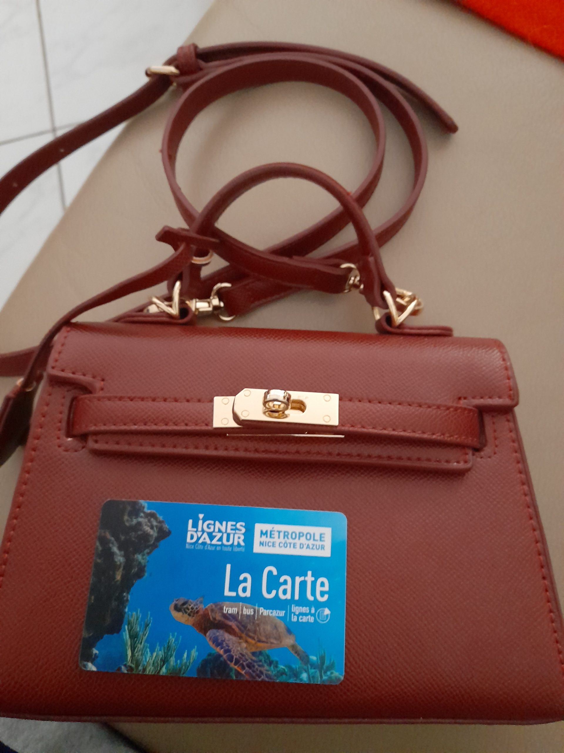 Objet trouvé : Petit sac style cuir couleur bordeaux avec lanière. Contenant 1 carte transports lignes d'azur, 1 trousseau de clefs sur porte-clefs, avec badge d'ouverture de porte.