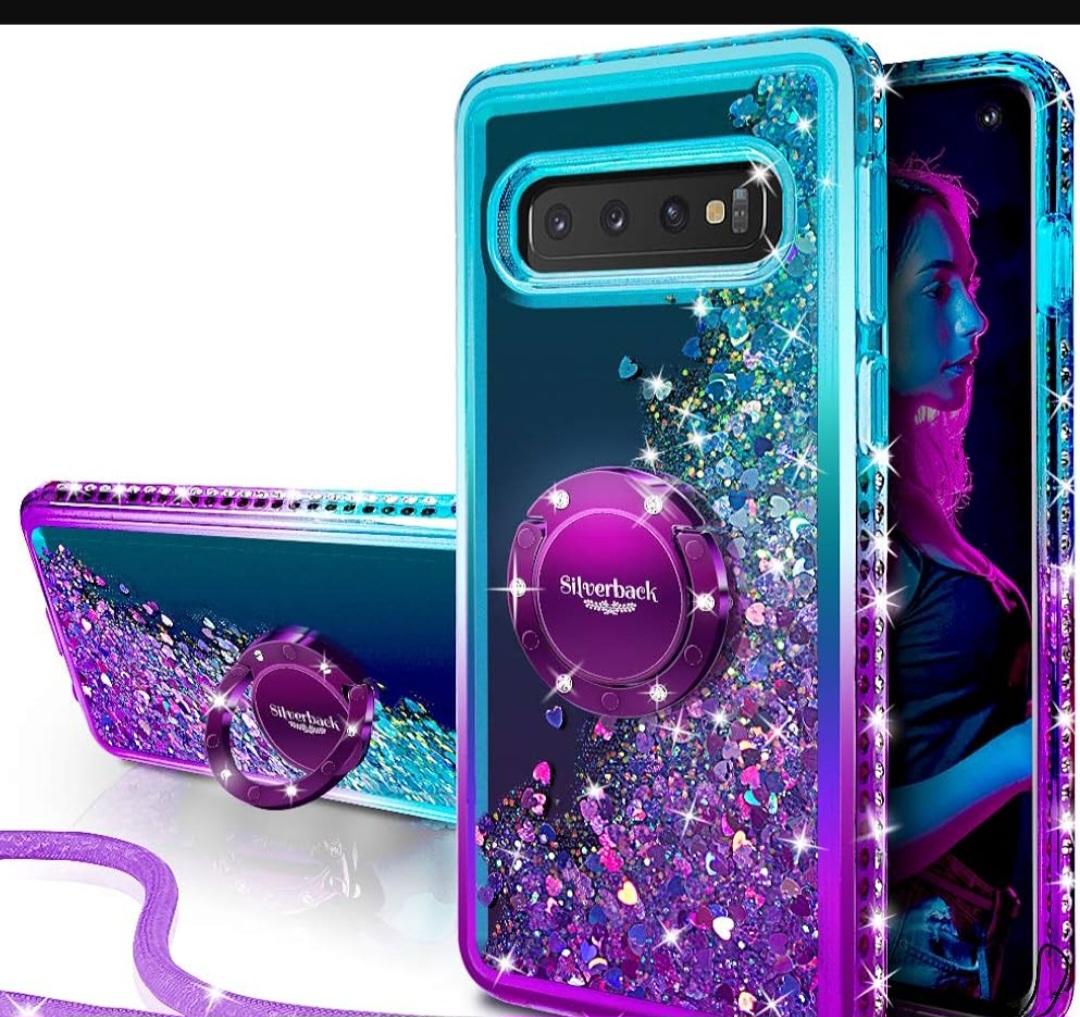 Objet perdu : Téléphone Samsung Galaxy S10 avec coque transparente dégradé violet vers bleu pailletée