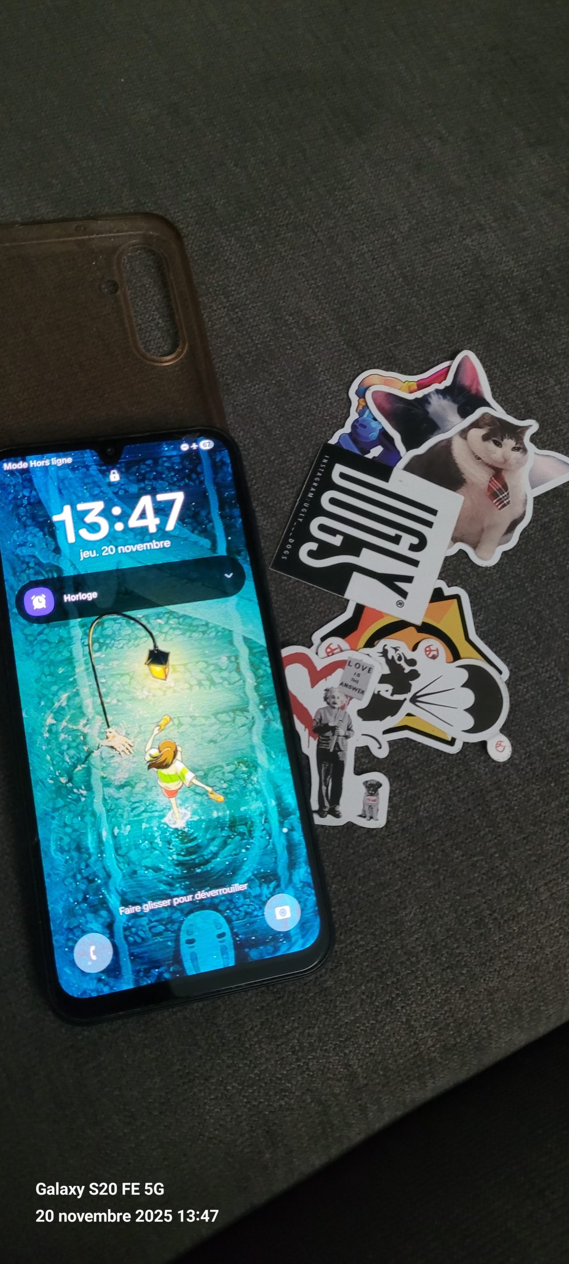 Objet trouvé : Téléphone portable Samsung bleu dans une coque transparente usée