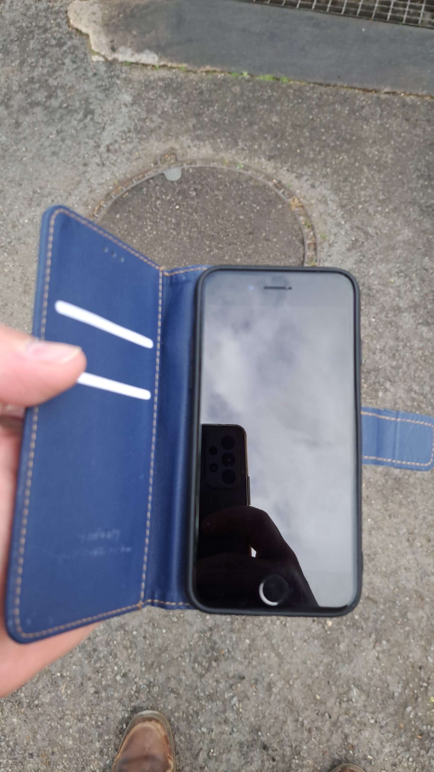 Téléphone de marque Apple avec coque de protection à rabat bleue