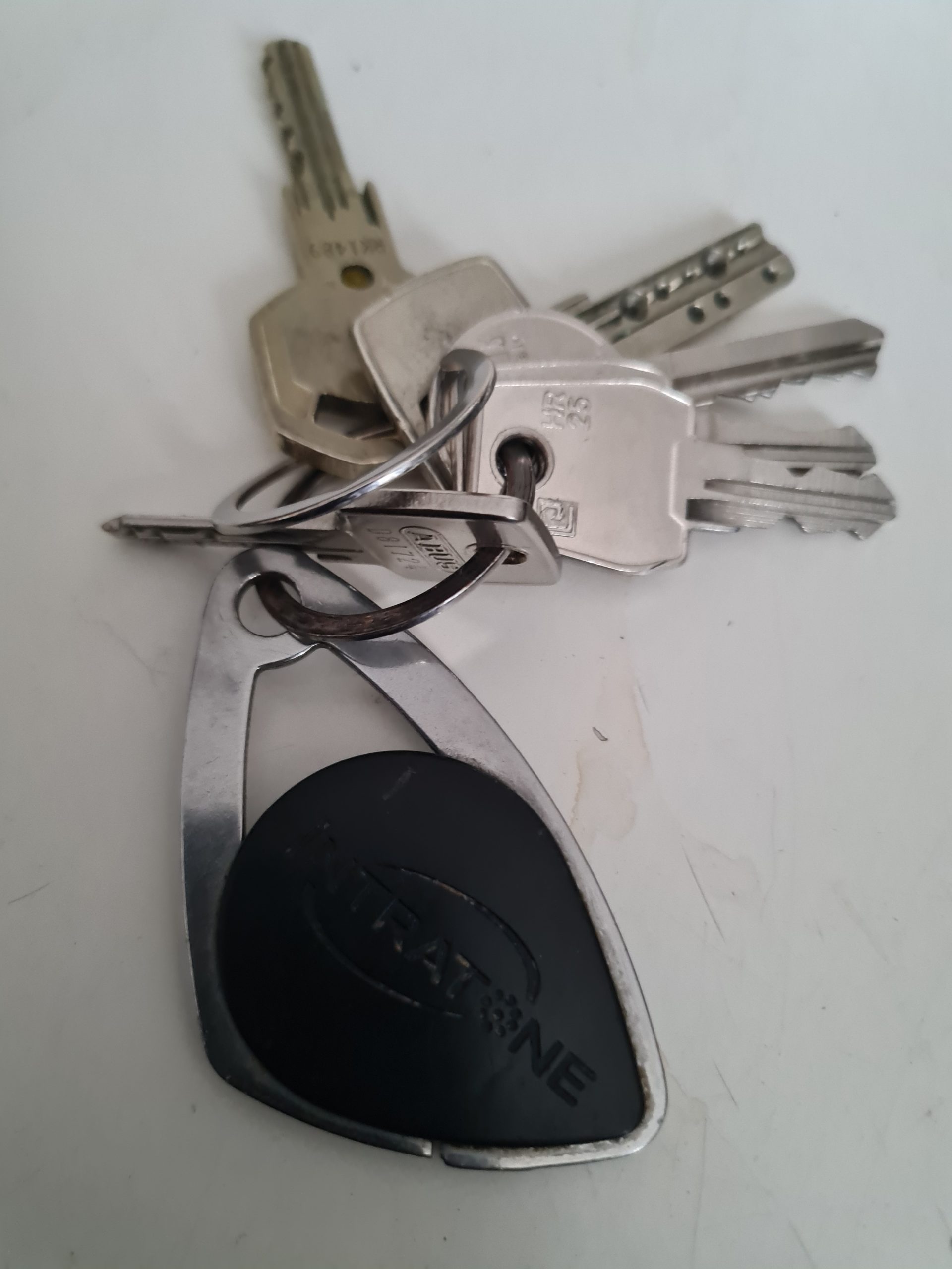 Objet trouvé : Trousseau avec 6 clé + 1 passe électronique noir. Sur le même anneau.