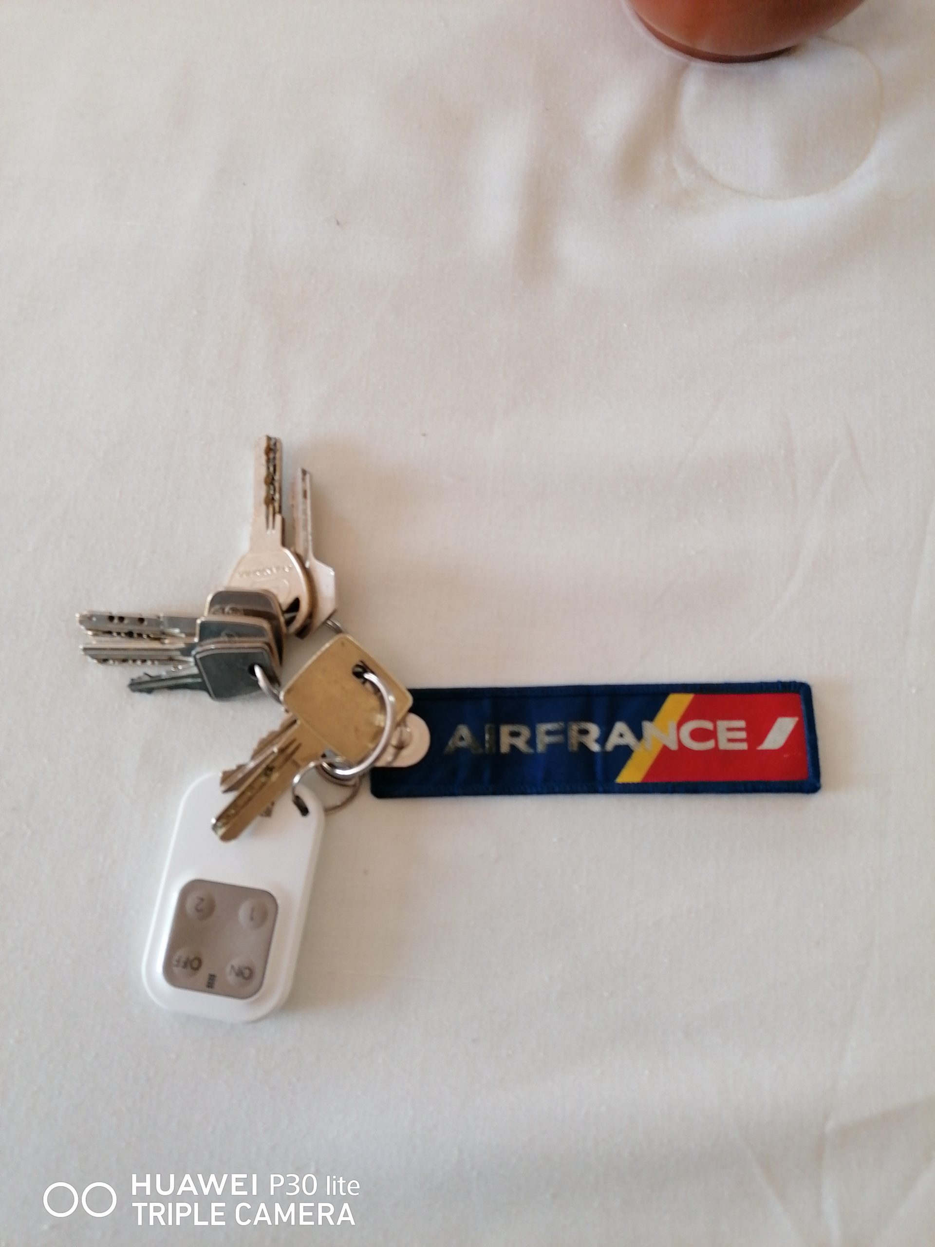 Objet trouvé : 7 clefs et 1 badge. Lanière Air France. La Réunion