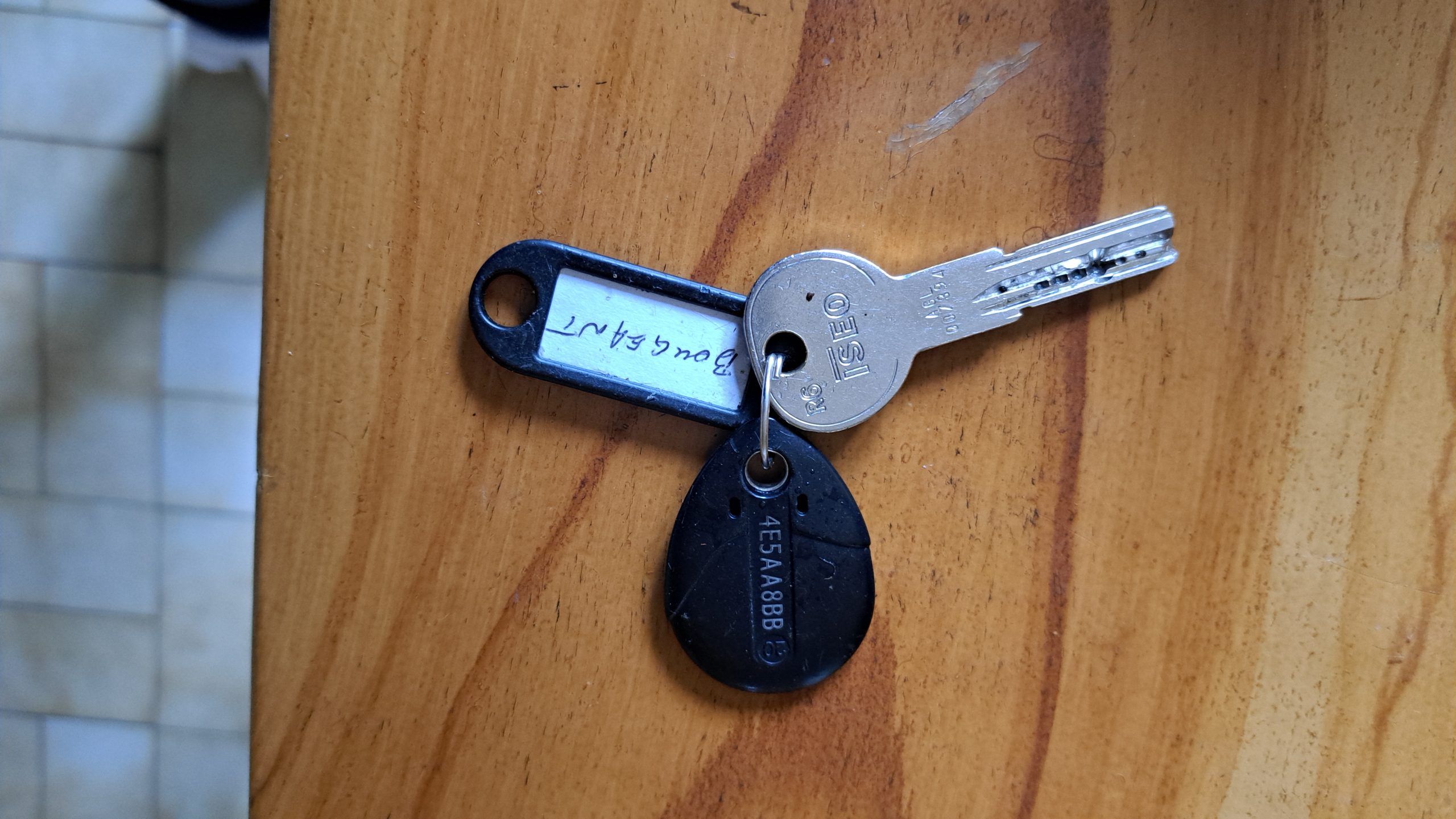 Objet trouvé : une clé sécurit et un badge noir,ainsi que le nom
