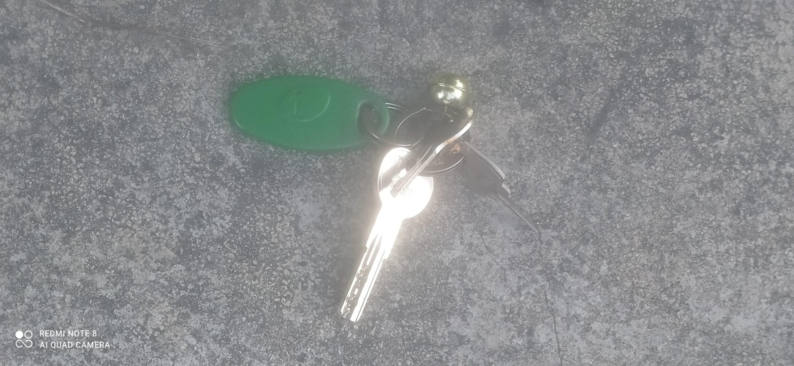 Objet trouvé : Trousseau clef avec badge et porte clef vert. Trouvé par terre et laissé sur un muret au même niveau côté sens circulation montée Rue Jean Monnet