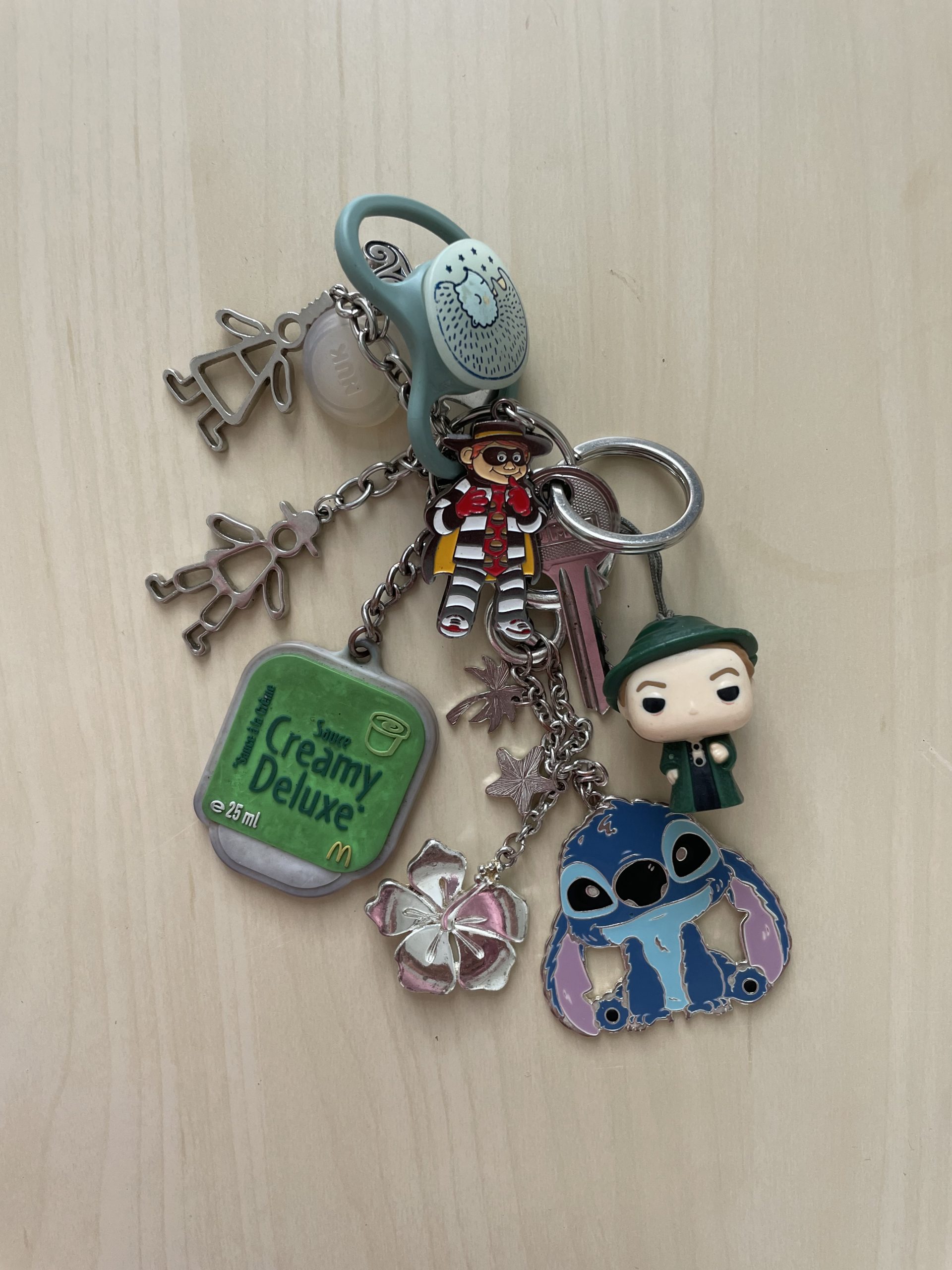 Objet trouvé : Trousseau de clés (avec une seule clé) avec plusieurs portes clés dessus:
