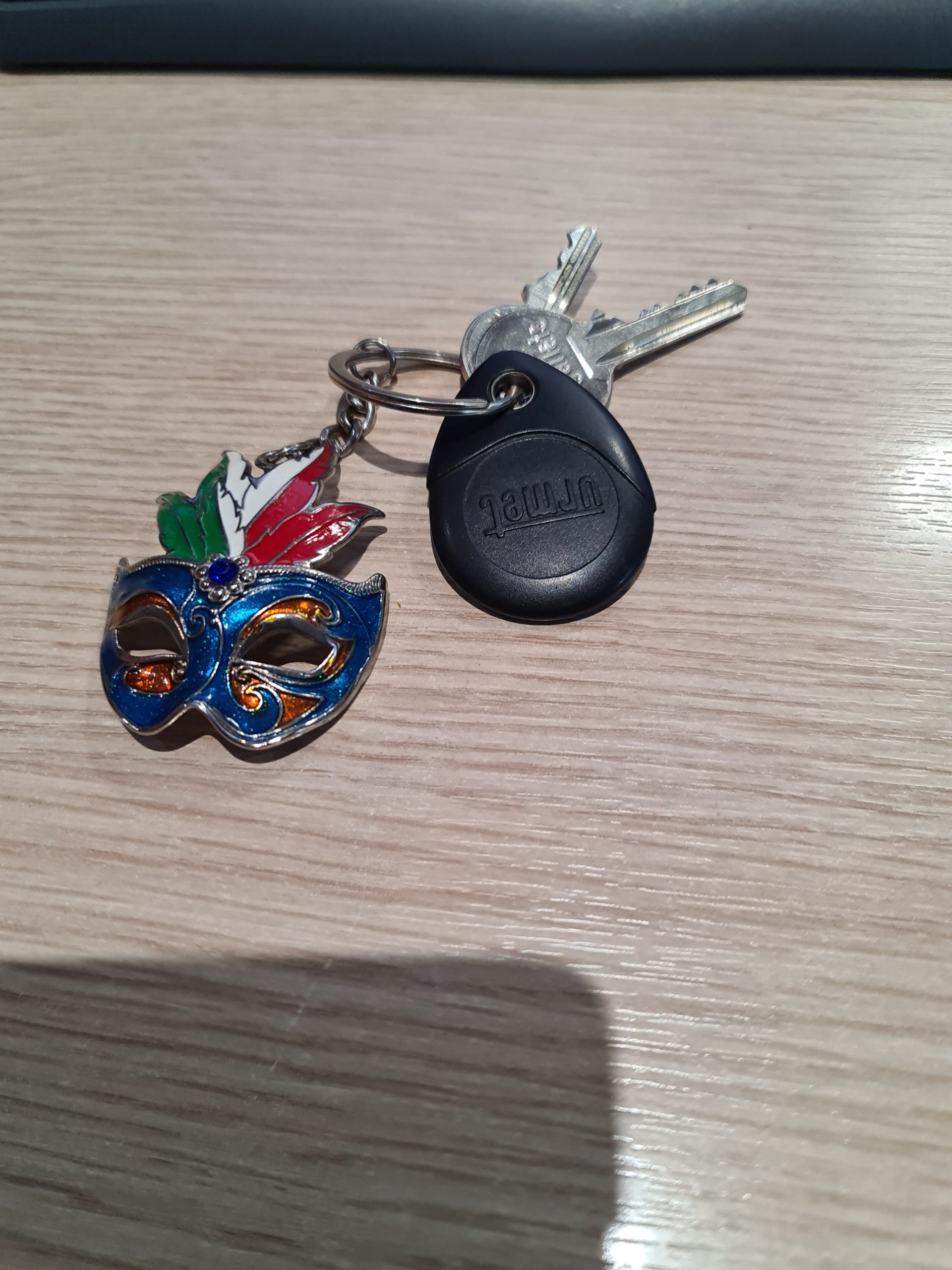 Objet trouvé : porte clés avec masque carnaval de Venise + 2 clés + badge porte