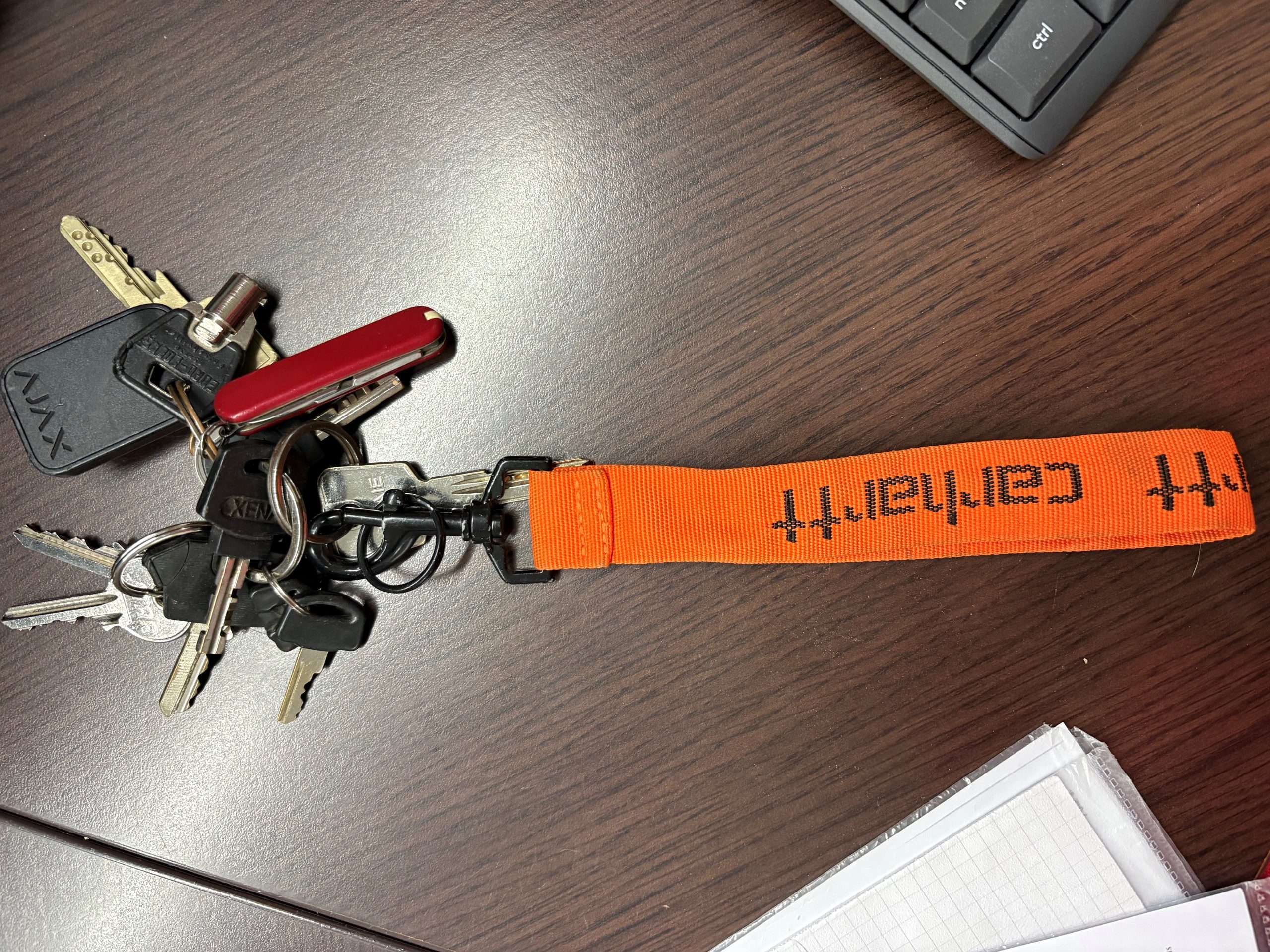 Marque(s) : Trousseau de clés (10 clés +badge) conséquent avec porte clés tissu orange marque CARHARTT