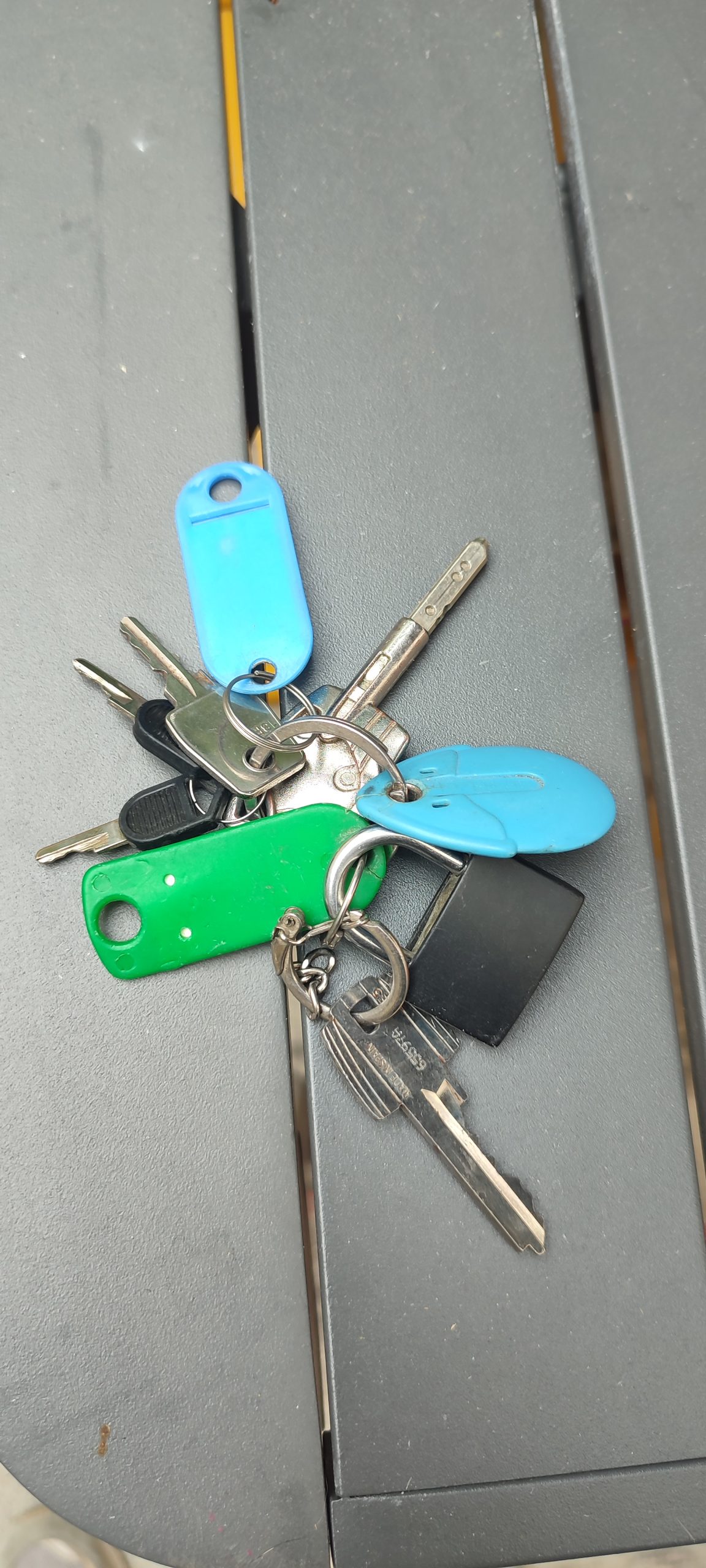 2 porte clés. Bleu avec inscription 2210 et vert avec inscription 1 rue du vignoble