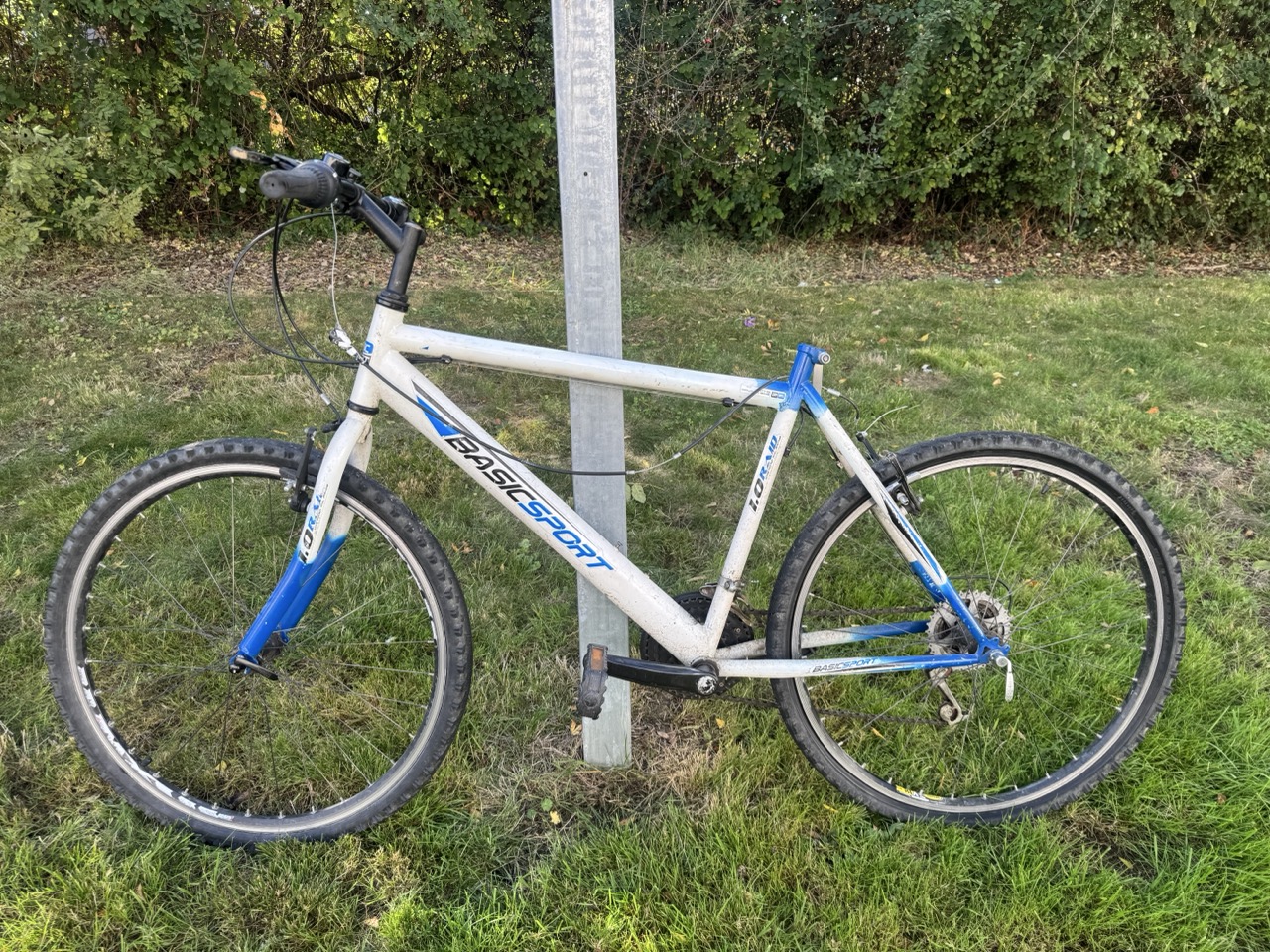 Objet trouvé : Vélo blanc et bleu BASICSPORT 1.0 RAID