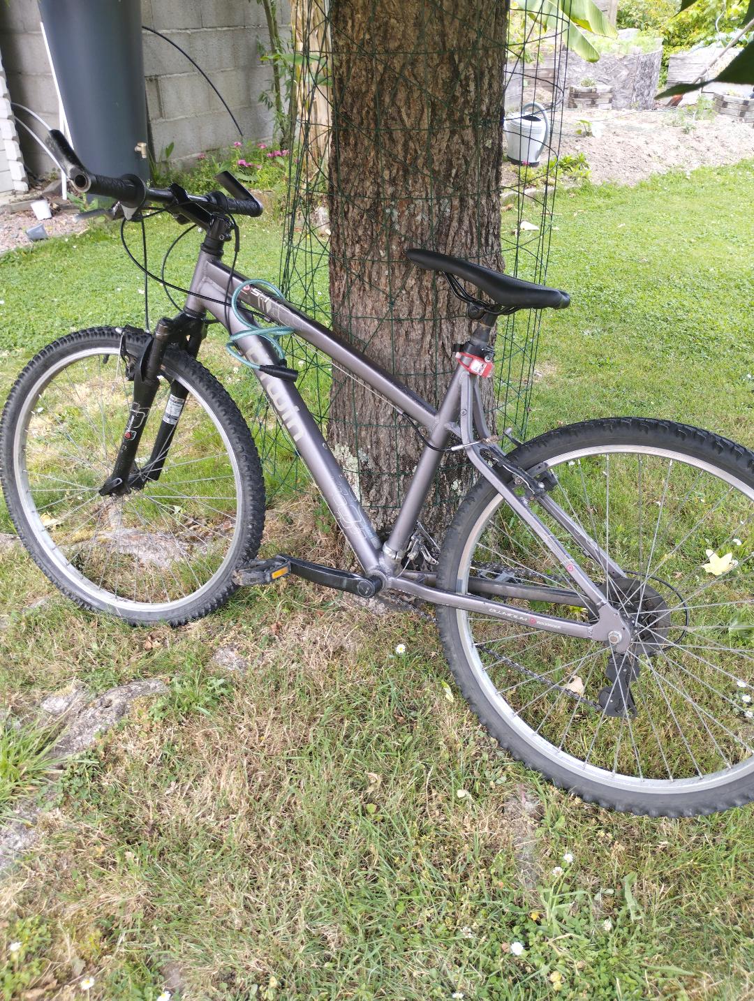Objet trouvé : VTT gris, taille ado, petite lampe en plastique rouge attaché à la selle